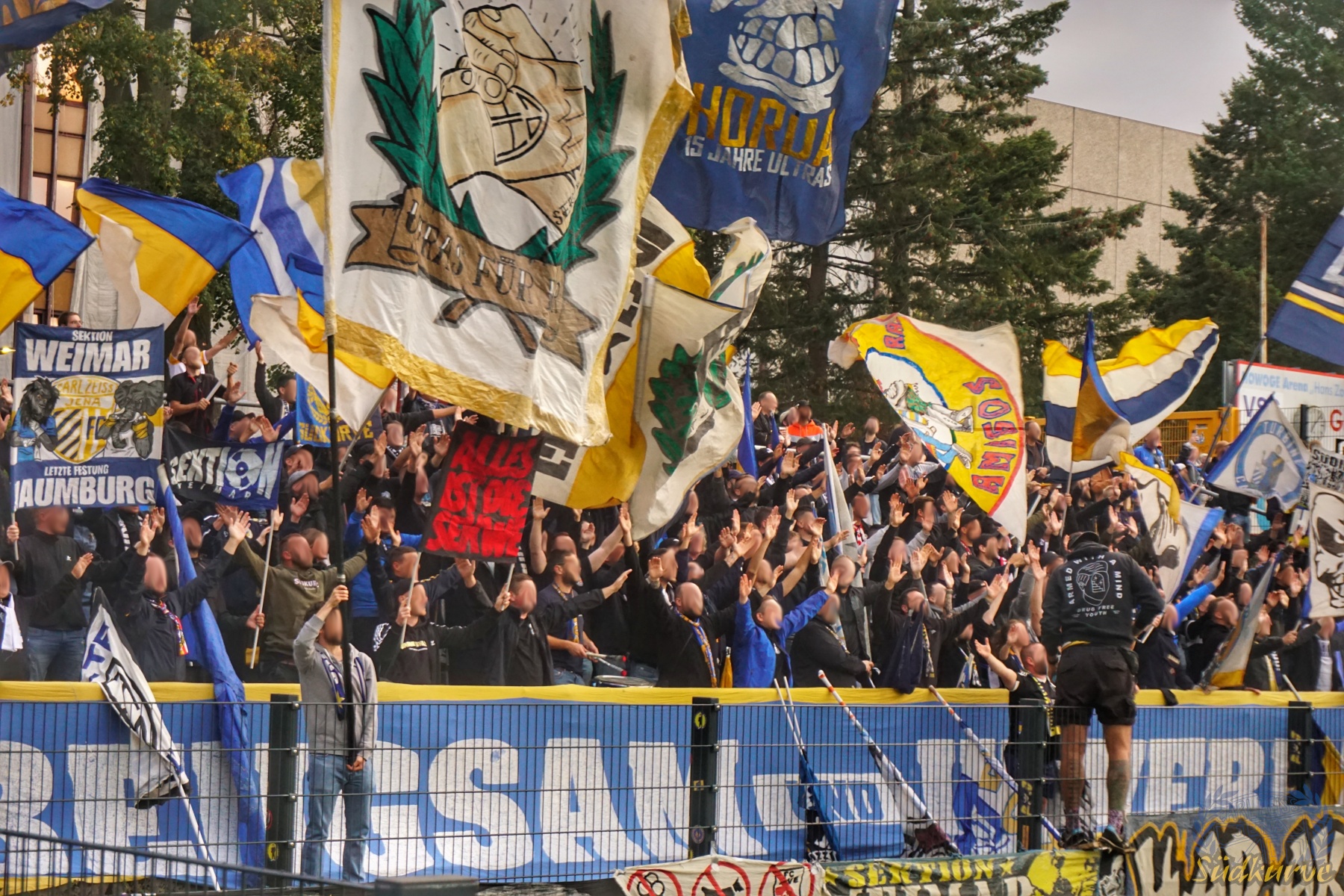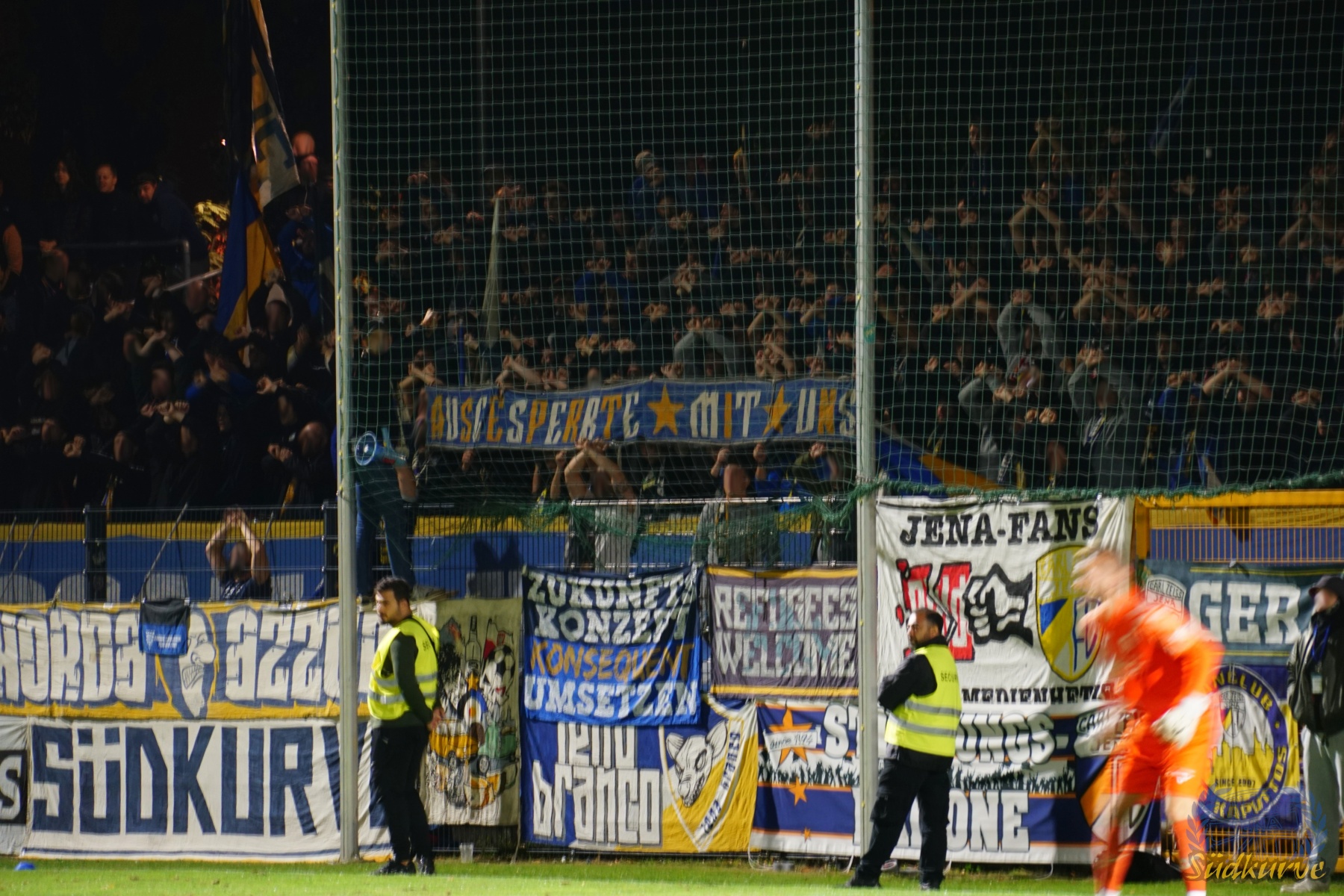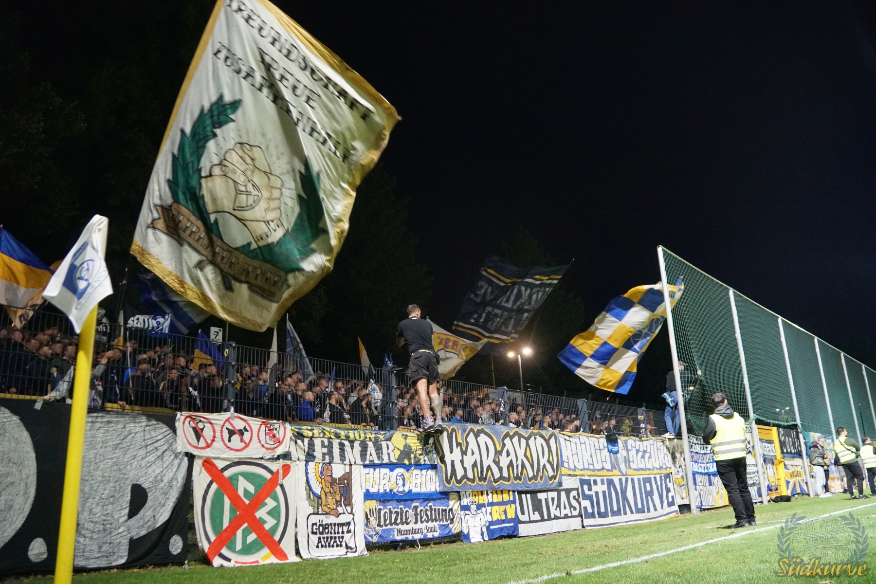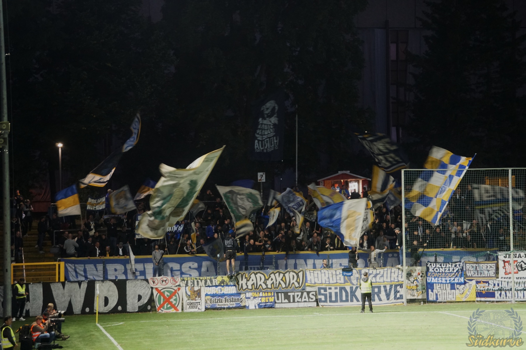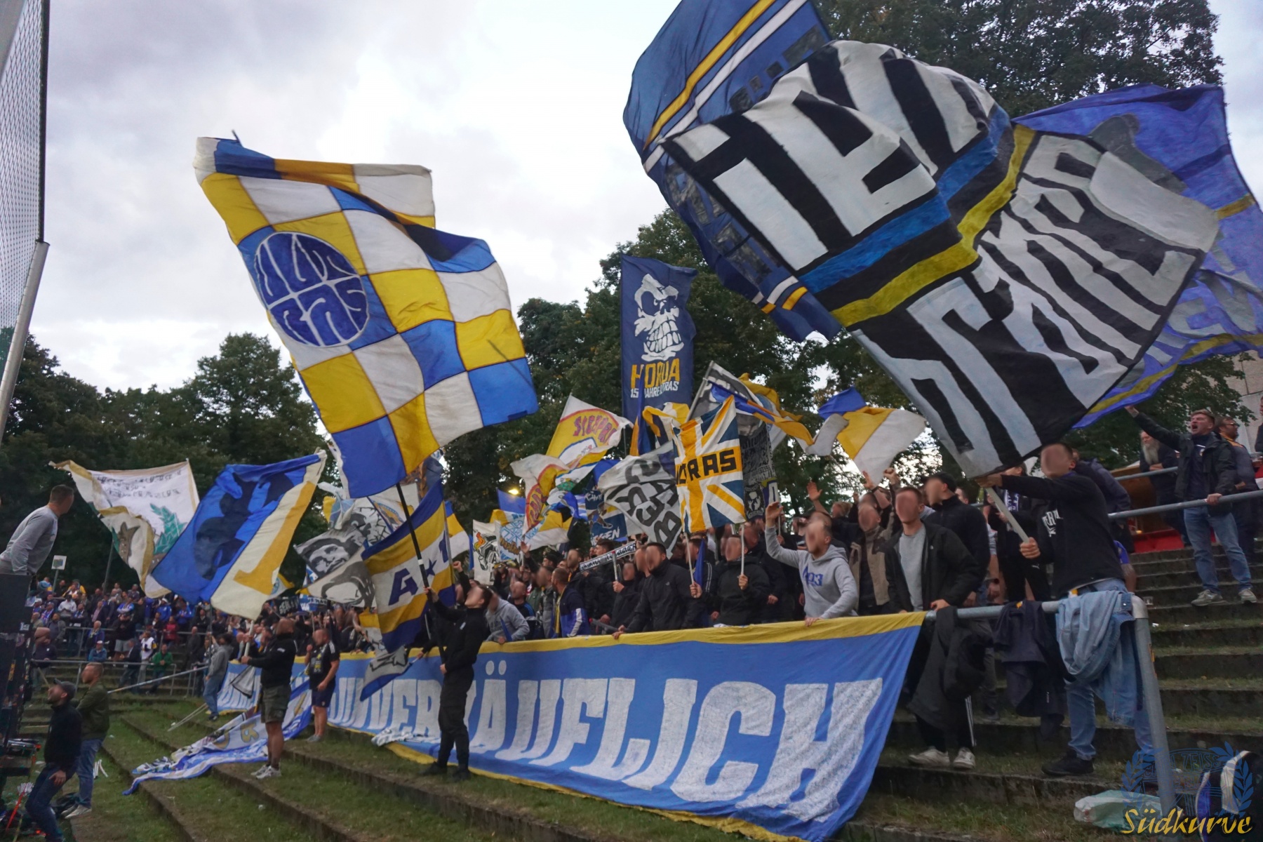 Nach einem so unerwarteten wie fulminanten Start in die neue Spielzeit musste ein solches Spiel einfach irgendwann kommen. Im sympathischen Hans-Zoschke-Stadion unter der Woche anzutreten bedeutete für uns auch eine neue Erfahrung. In Halbzeit eins brauchte die Kurve etwas, um ein zumindest zwischenzeitlich bzw. phasenweise zufriedenstellendes Niveau zu erreichen. Nach der Pause klappte es dann besser und trotz vier Gegentoren und den ersten verlorenen Punkten der Saison sind wir nicht unzufrieden durch die Nacht nach Hause gefahren.
