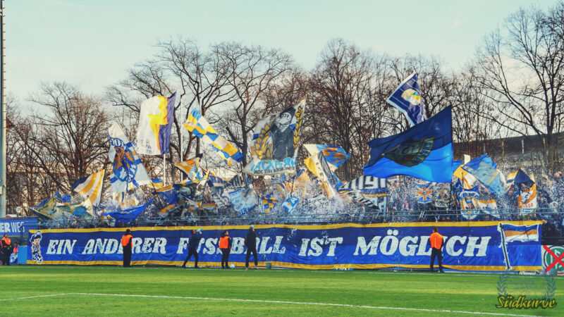 Das ging mächtig in die Hose, was auch irgendwann an der Kurve nicht mehr ganz spurlos vorbei gehen kann. Im Vergleich zum Duell gegen Zehlendorf an gleicher Stelle vor wenigen Tagen, konnte sich nur selten Leichtigkeit entfalten. Man war verwöhnt!? Handbremse hier, Sorgenfalten und Trott da. In Summe ein Auftritt, der gerade so okay war. In Erinnerung bleibt da eher eine kleine Aktion unter dem Motto „RESPEKT ALLEN ULTRAS DIE DRAUSSEN STEH’N“.