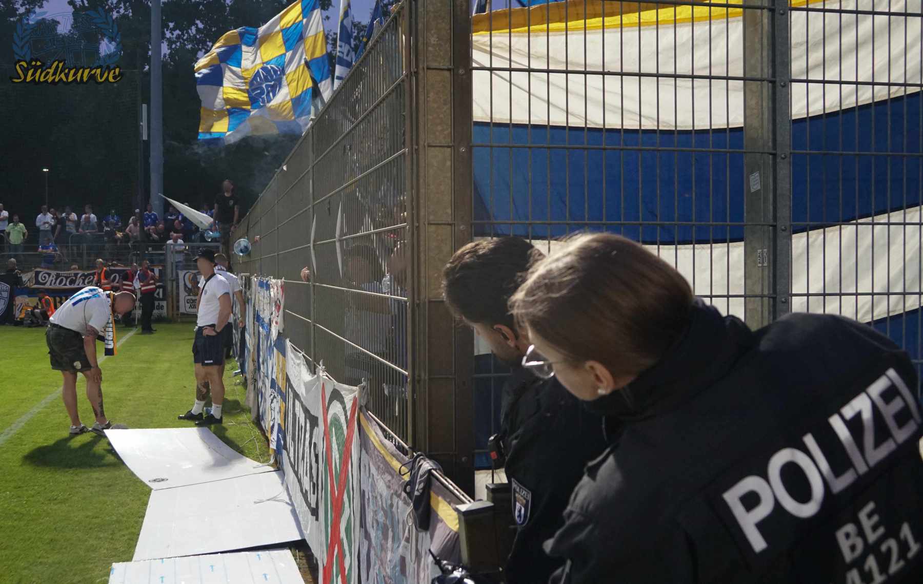 Im Gästeblock verzeichneten etwa 200-250 dauerhaft singende Schlachtenbummler einen vernünftigen Beitrag zur FCC-Visitenkarte, wenngleich die Begebenheiten (mal Fluch, mal Segen) phasenweise auch für mehr getaugt haben.
