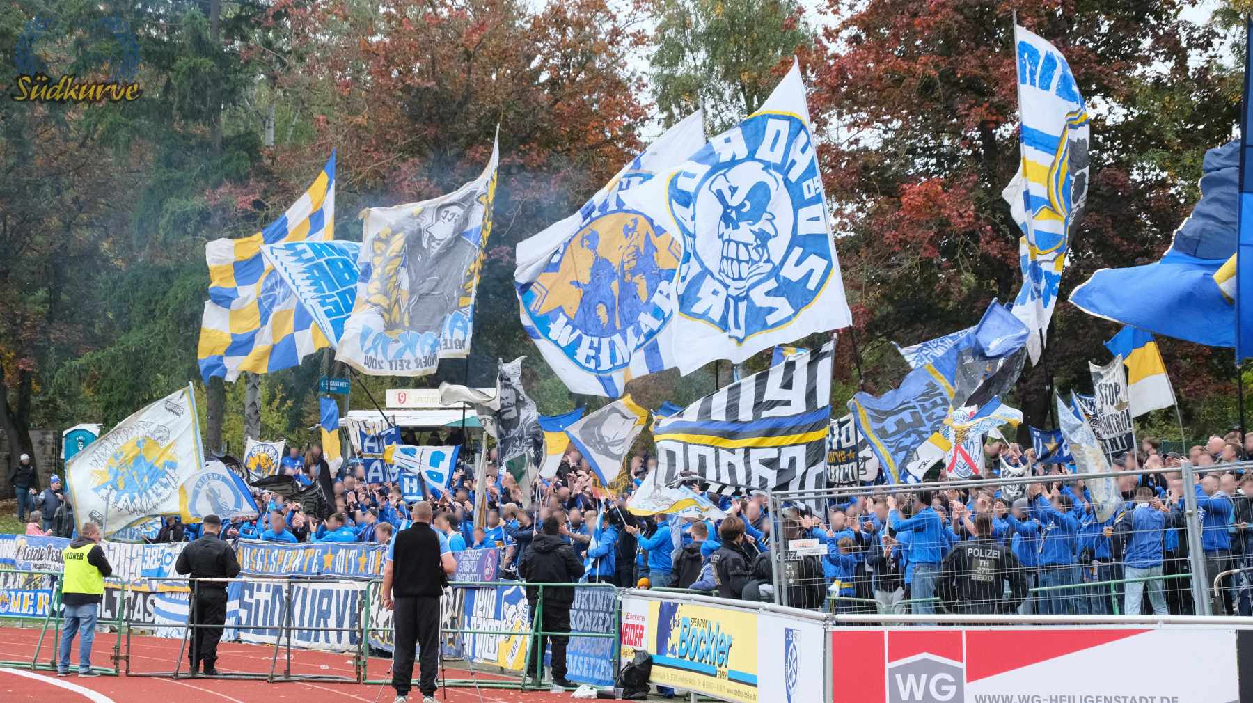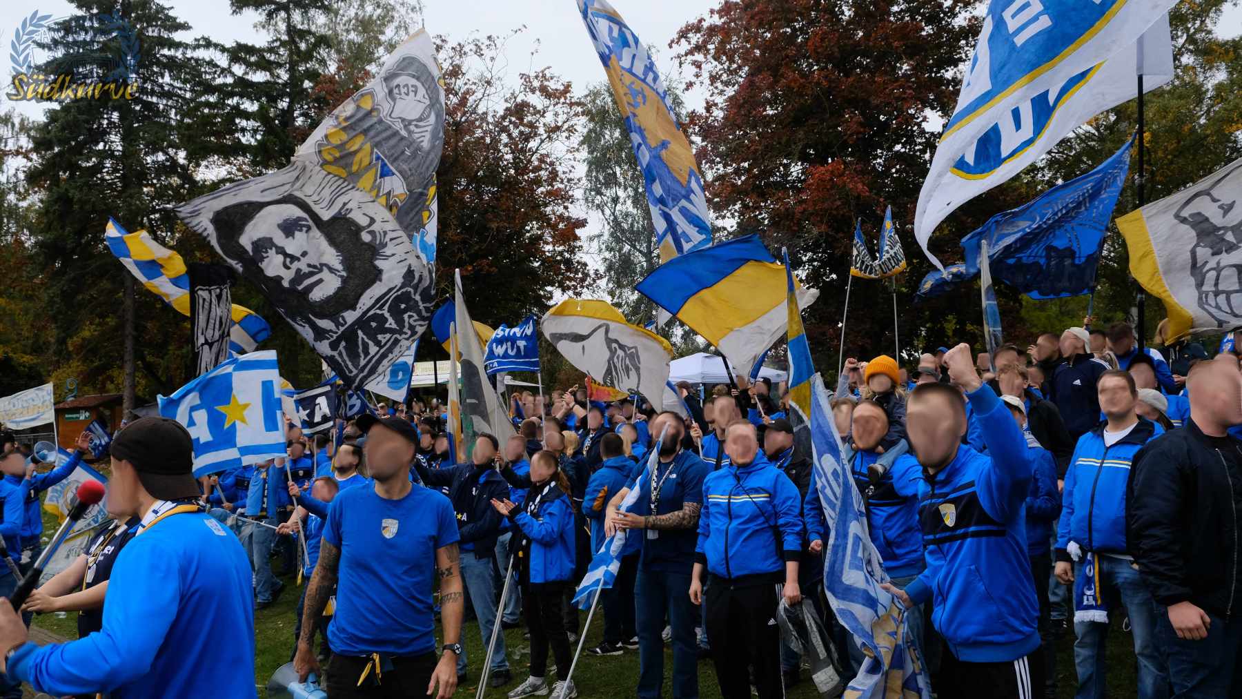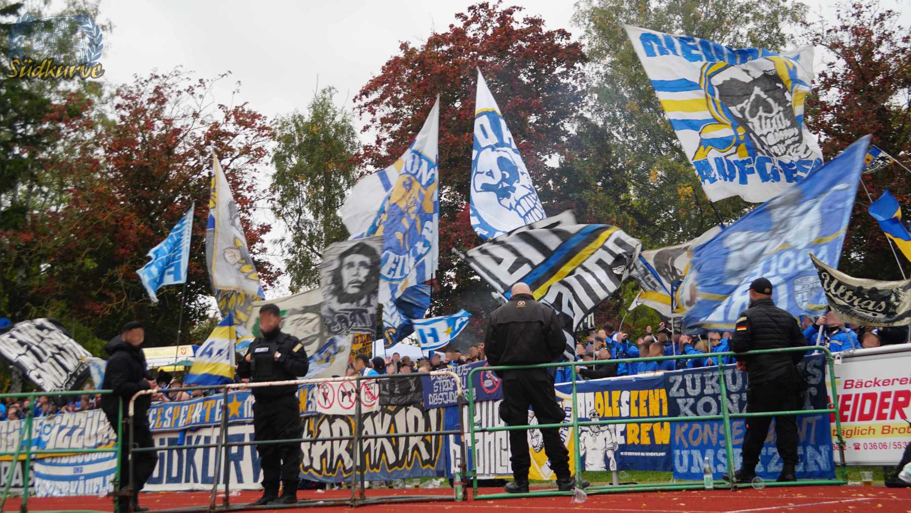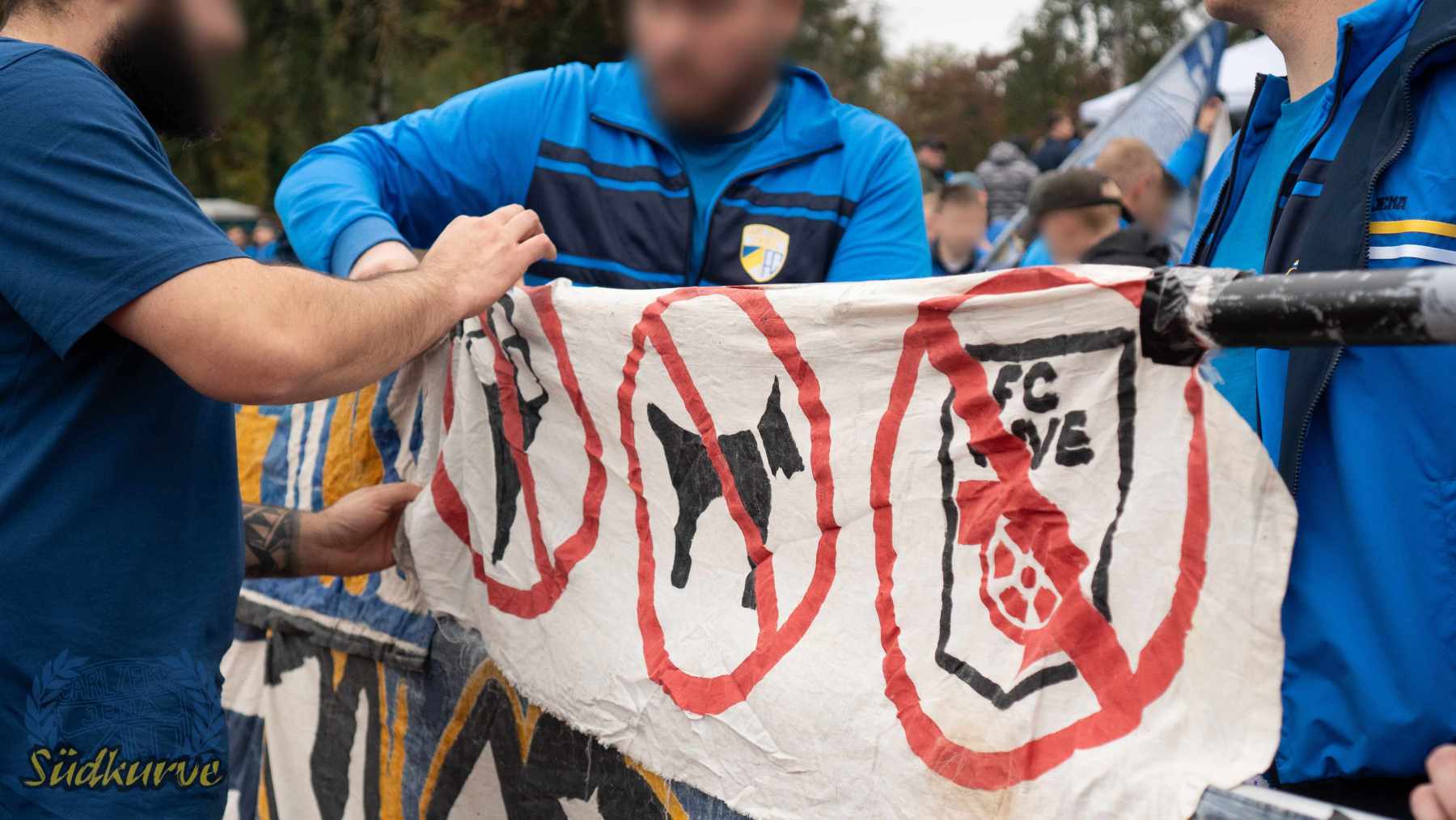 Die Wichtigkeit des Wettbewerbs zum einen und das zu keiner Zeit angebrachte Unterschätzen von Gegnern wie dem 1. SC Heiligenstadt war der Gesamtzahl mitgereister FCC-Fans nicht abzulesen. Nur ganz wenige Blaugelbweiße tummelten sich außerhalb der ca. 250 singenden Schlachtenbummler. Daher fällt das Gesamtfazit zweigeteilt aus: ausgelassener Tifo hier, zu wenig Motivation und Reisebereitschaft da. Ob es nun die Fernduelle mit dem Feind, die sich schnell als Stolperstein entpuppenden Landespokal-Gegner oder aber schlicht und einfach die besonderen Momente der Pflichtspiele in eher selten besuchten Stadien sind: rafft Euch wieder auf Zeisser – fahrt die Pokalspiele! Alle!