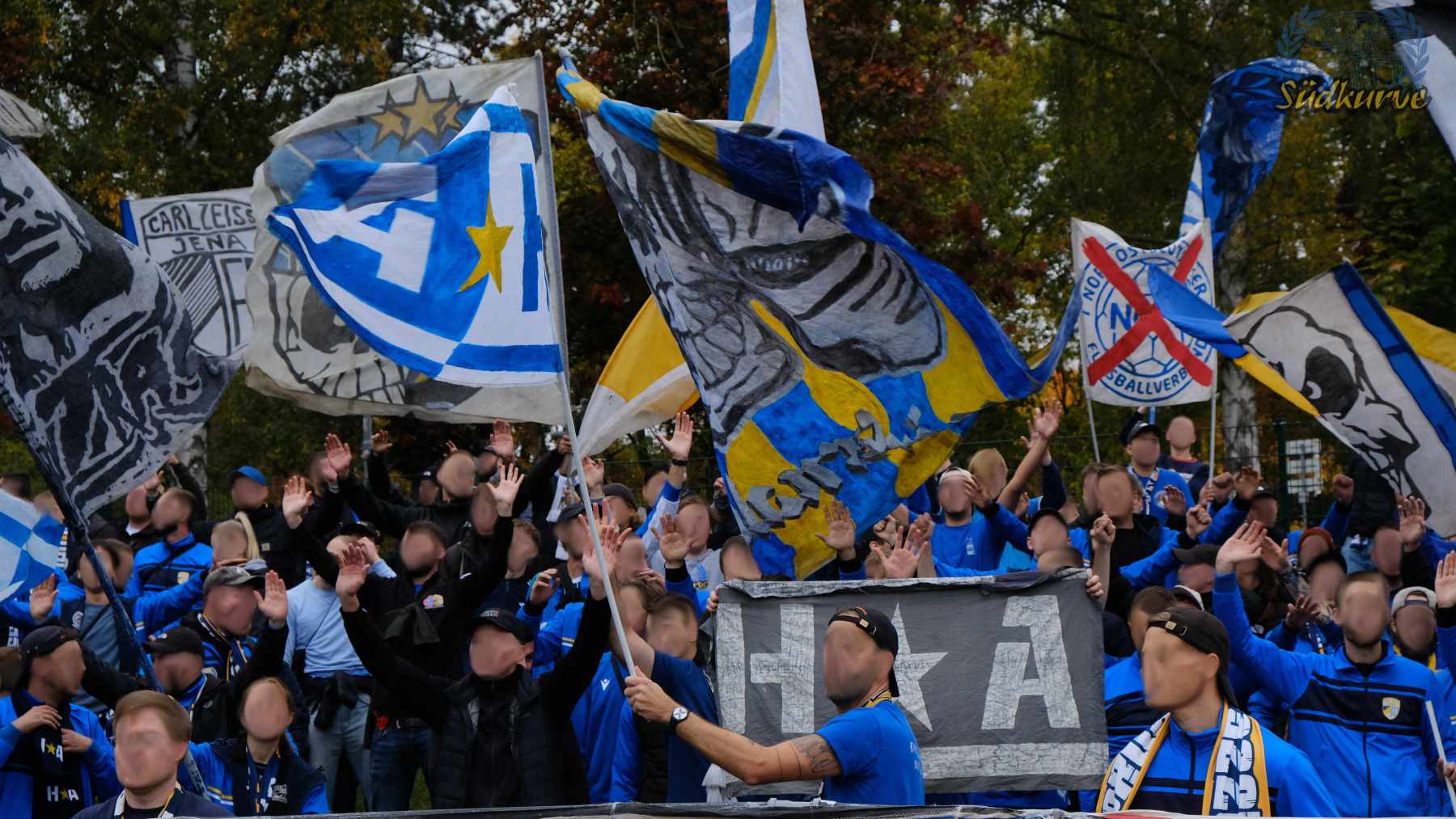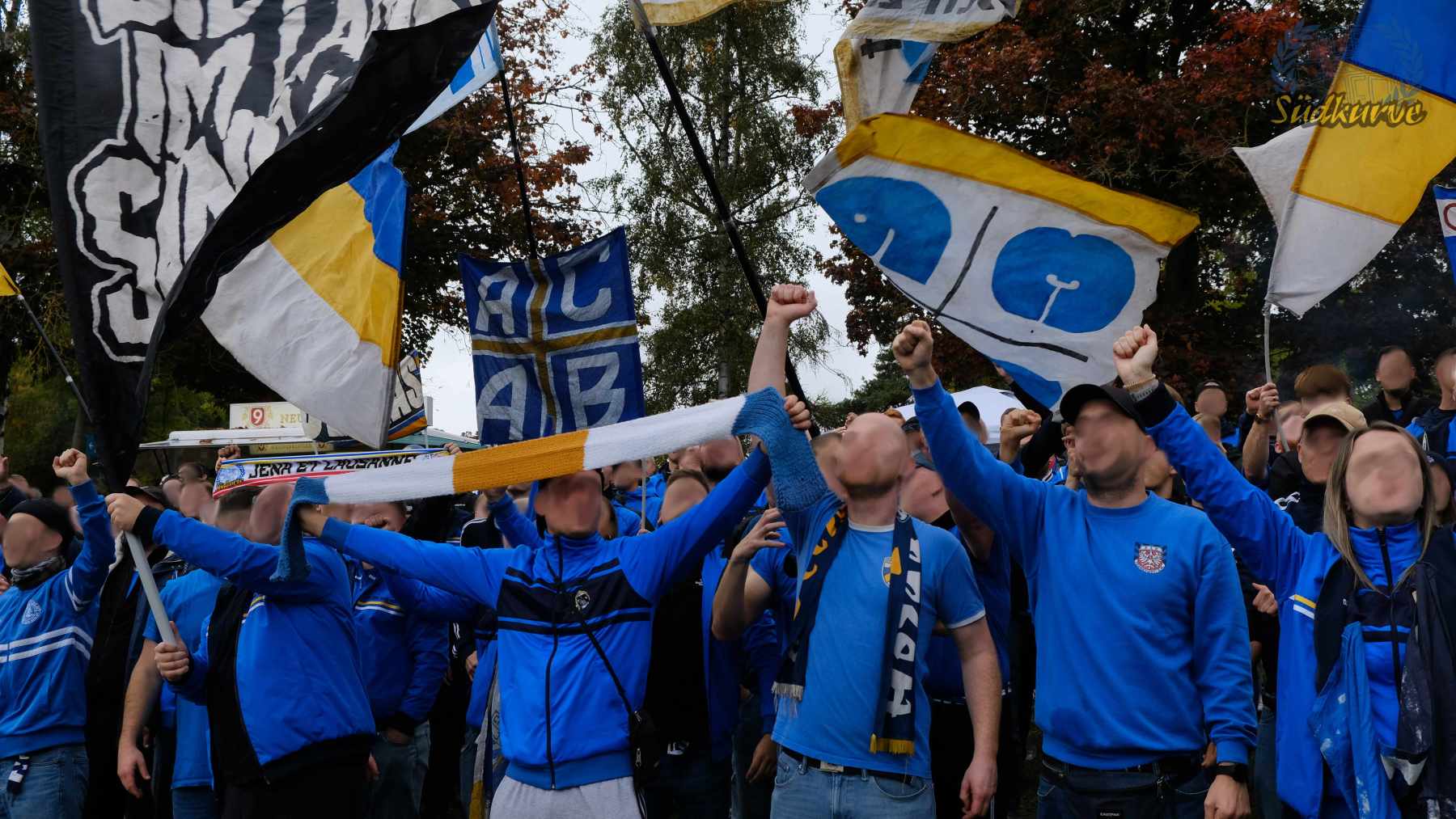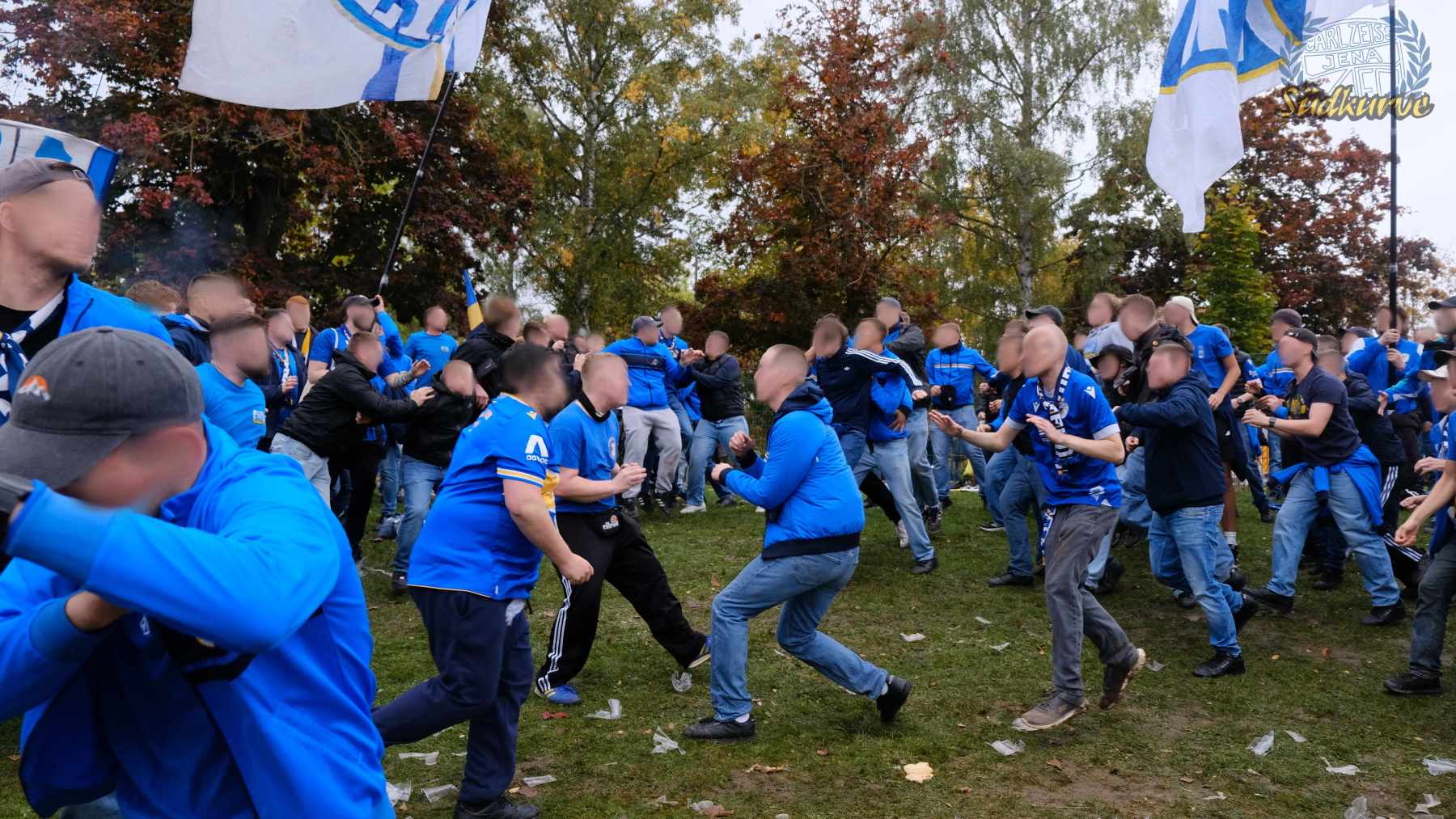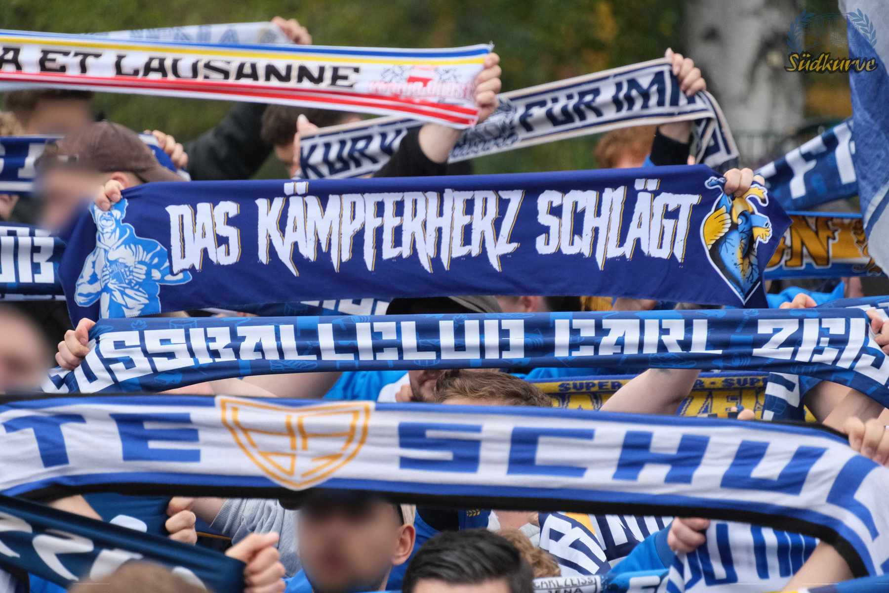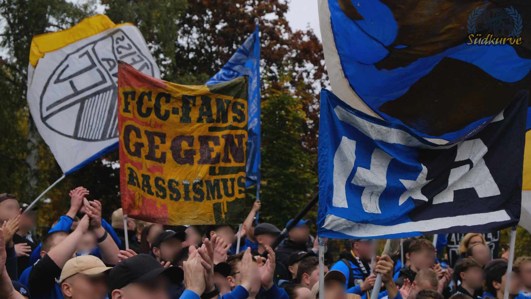 Die Wichtigkeit des Wettbewerbs zum einen und das zu keiner Zeit angebrachte Unterschätzen von Gegnern wie dem 1. SC Heiligenstadt war der Gesamtzahl mitgereister FCC-Fans nicht abzulesen. Nur ganz wenige Blaugelbweiße tummelten sich außerhalb der ca. 250 singenden Schlachtenbummler. Daher fällt das Gesamtfazit zweigeteilt aus: ausgelassener Tifo hier, zu wenig Motivation und Reisebereitschaft da. Ob es nun die Fernduelle mit dem Feind, die sich schnell als Stolperstein entpuppenden Landespokal-Gegner oder aber schlicht und einfach die besonderen Momente der Pflichtspiele in eher selten besuchten Stadien sind: rafft Euch wieder auf Zeisser – fahrt die Pokalspiele! Alle!