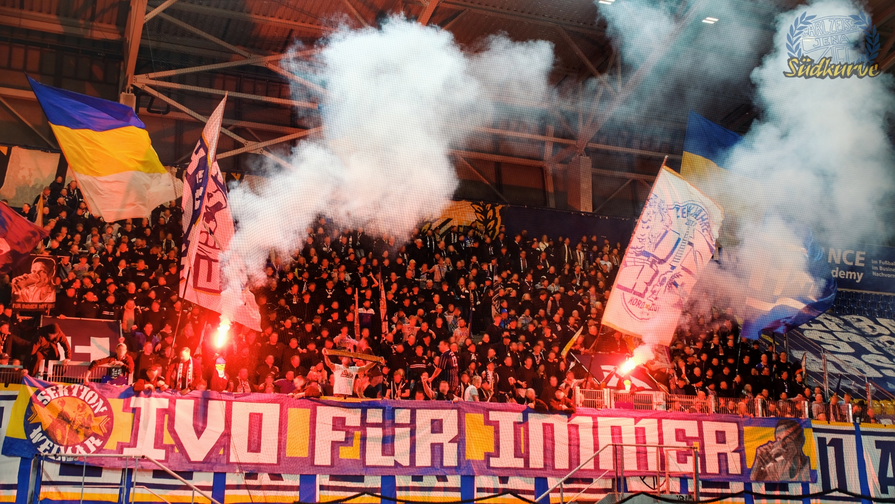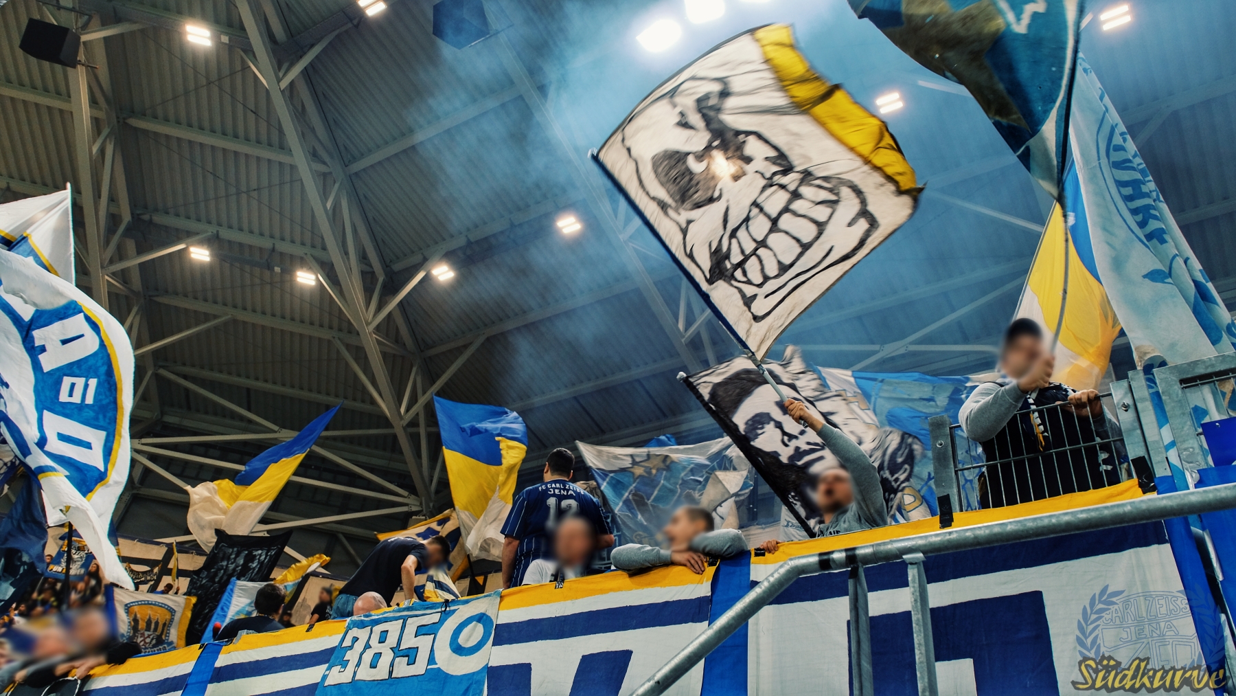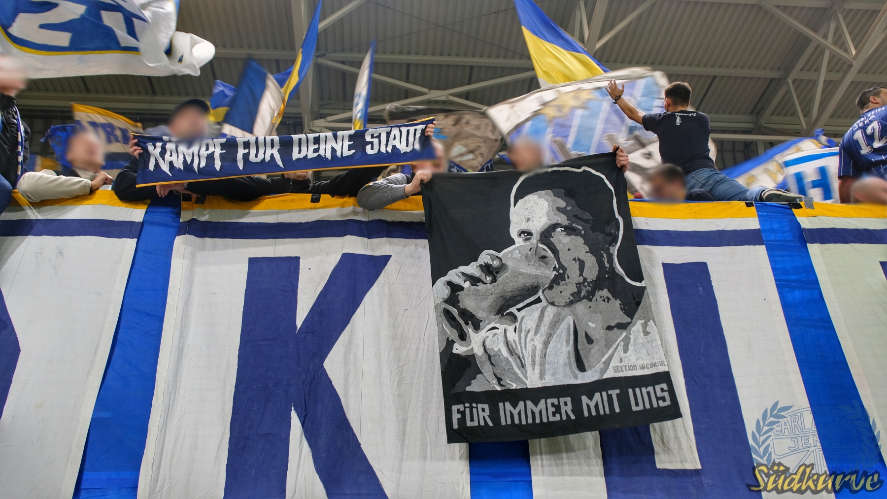 Die Punkte bleiben auch zum 24. Geburtstag der Horda Azzuro gegen die nächste aufstrebende Sternschnuppe am Berliner Fußballhimmel in Jena. Ein intensiver Abend für die Kurve: In Gedanken bei Ivo, laut(er) für die Ausgesperrten und mit der Faust gen Himmel gegen die Feinde unseres Clubs und unserer Kurve.