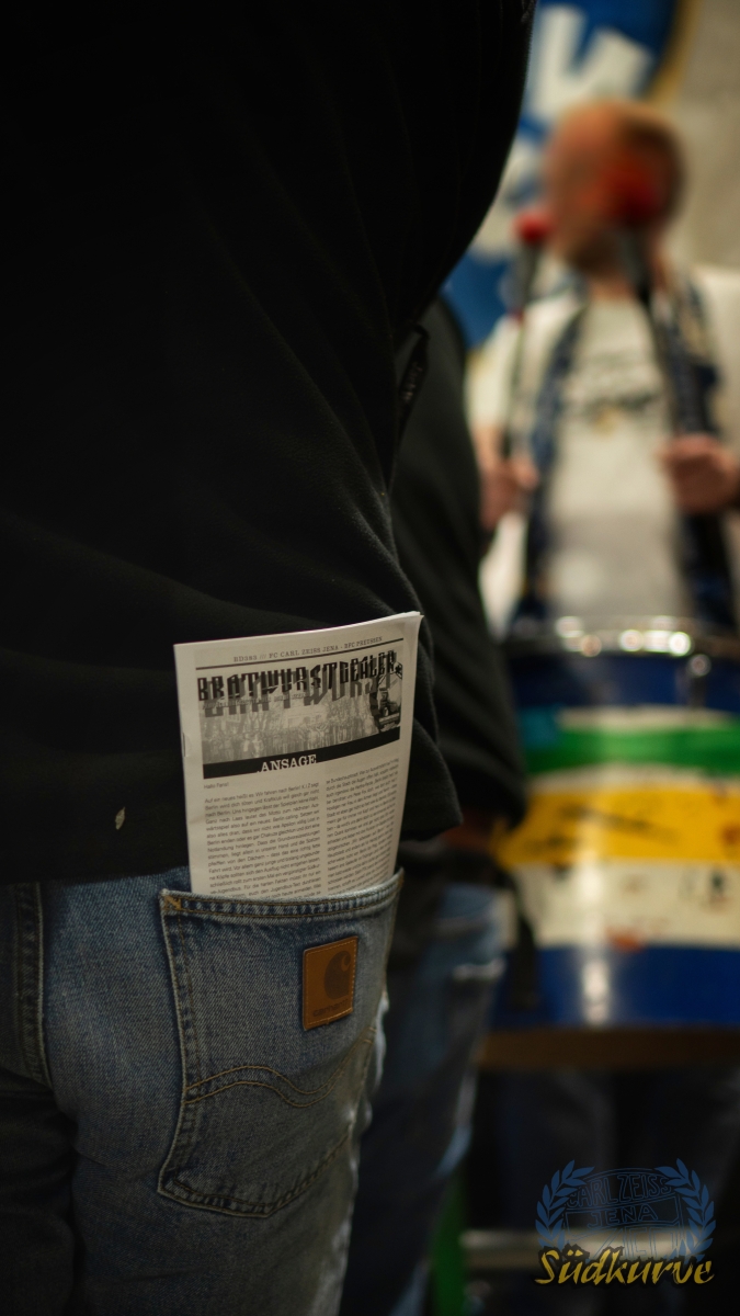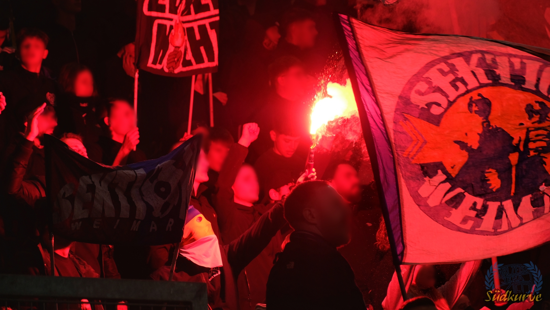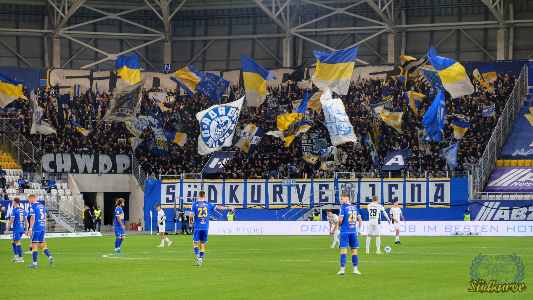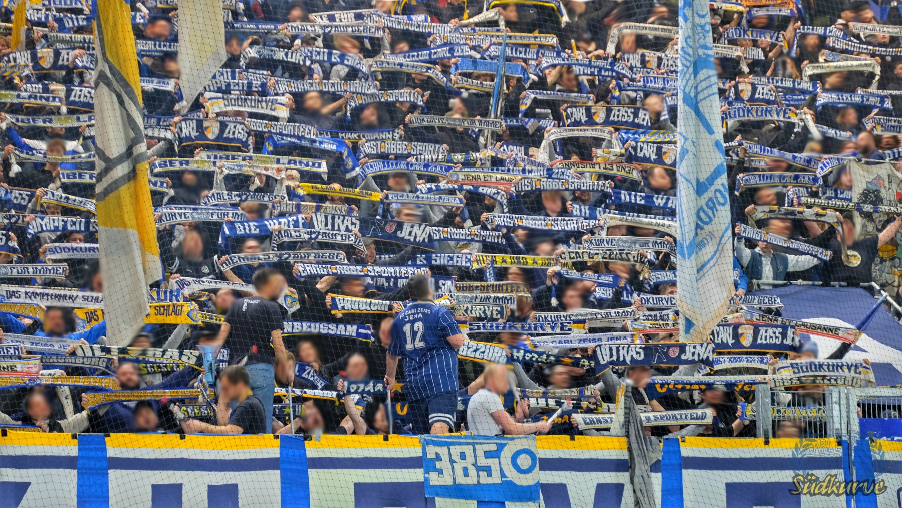 Die Punkte bleiben auch zum 24. Geburtstag der Horda Azzuro gegen die nächste aufstrebende Sternschnuppe am Berliner Fußballhimmel in Jena. Ein intensiver Abend für die Kurve: In Gedanken bei Ivo, laut(er) für die Ausgesperrten und mit der Faust gen Himmel gegen die Feinde unseres Clubs und unserer Kurve.