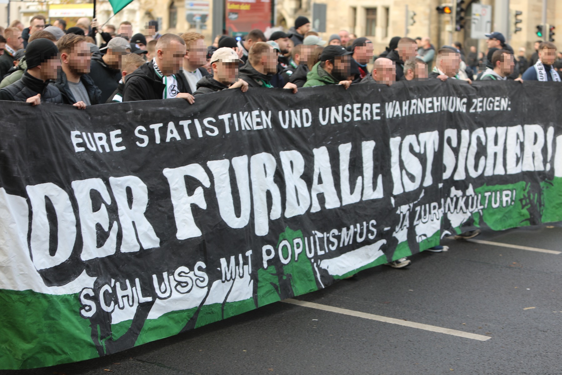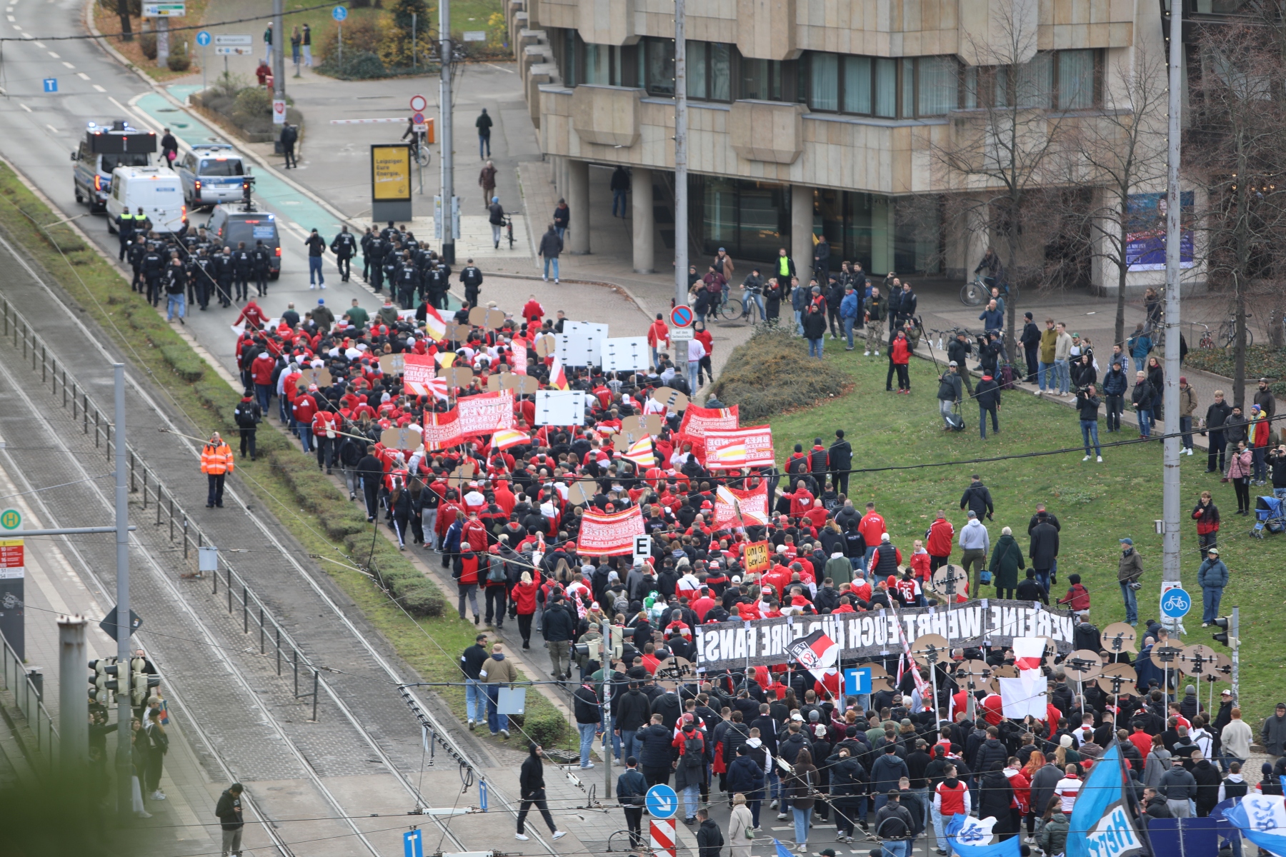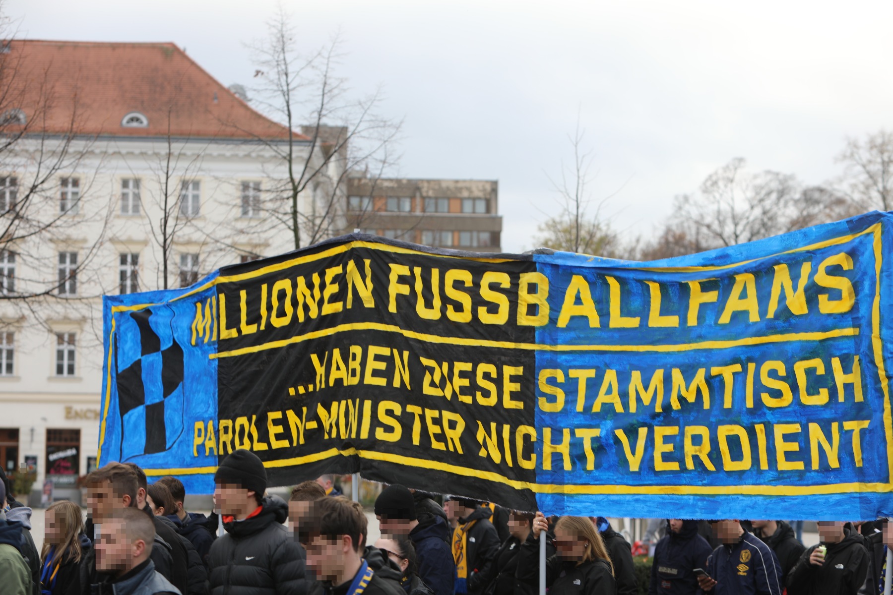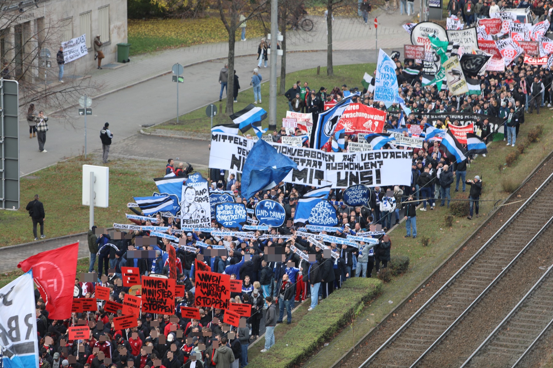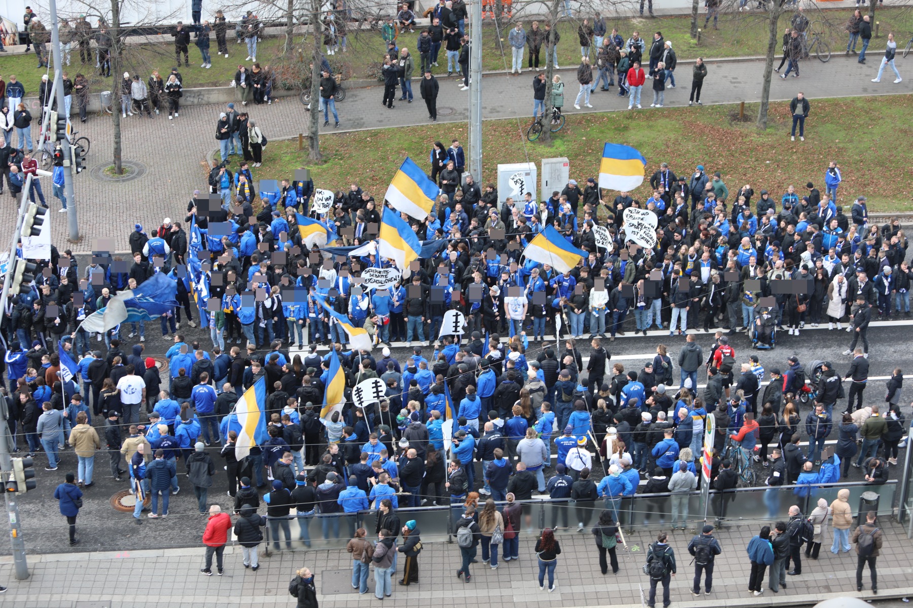 Rückblick Fan-Demo in Bildern Beitragsdatum 19. November 2025 Halbfinaleinzug im Stadt-Duell. Schwarz – Jeans – Schwarz!
