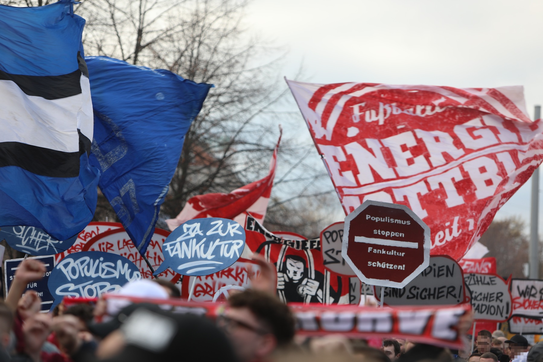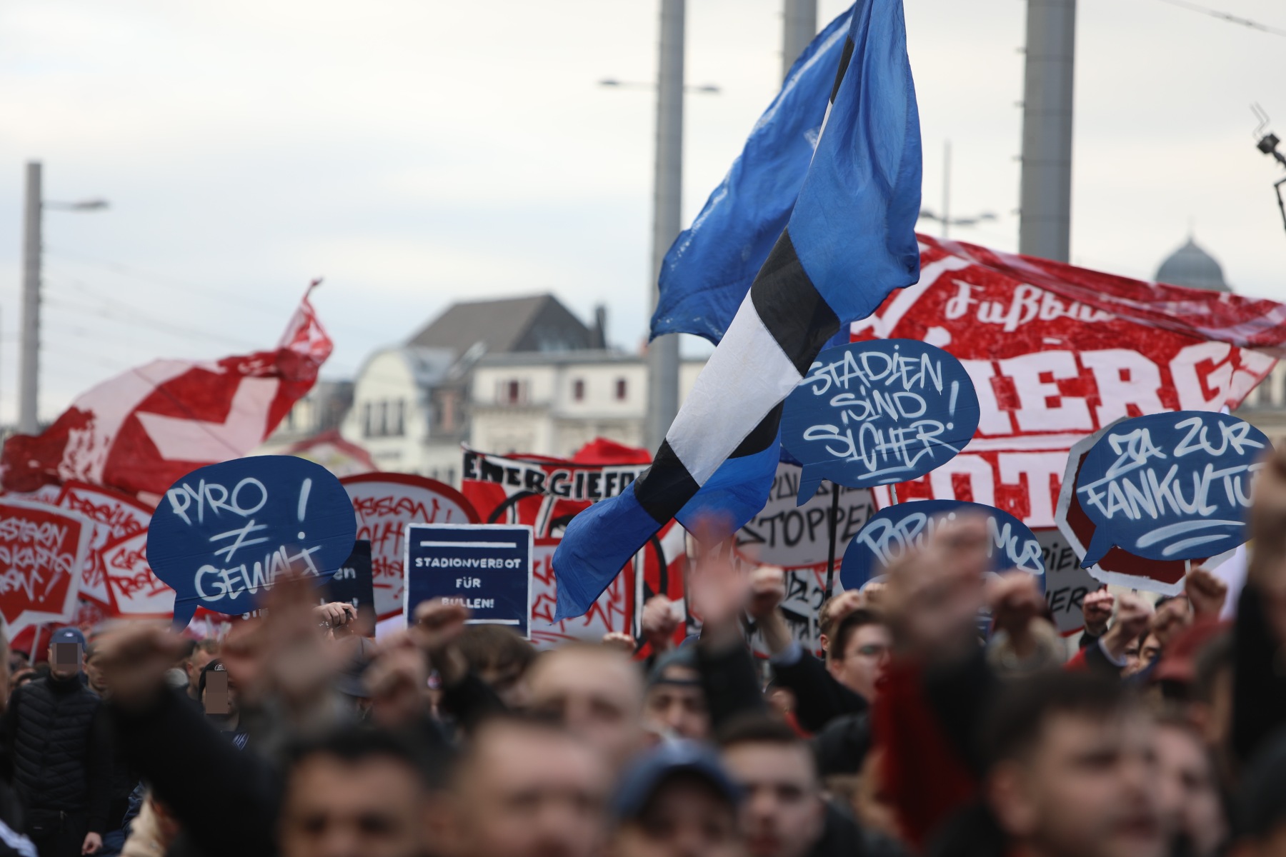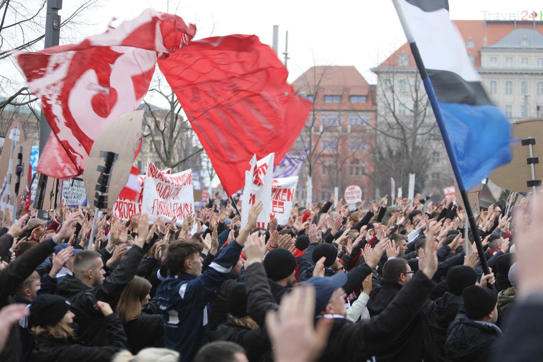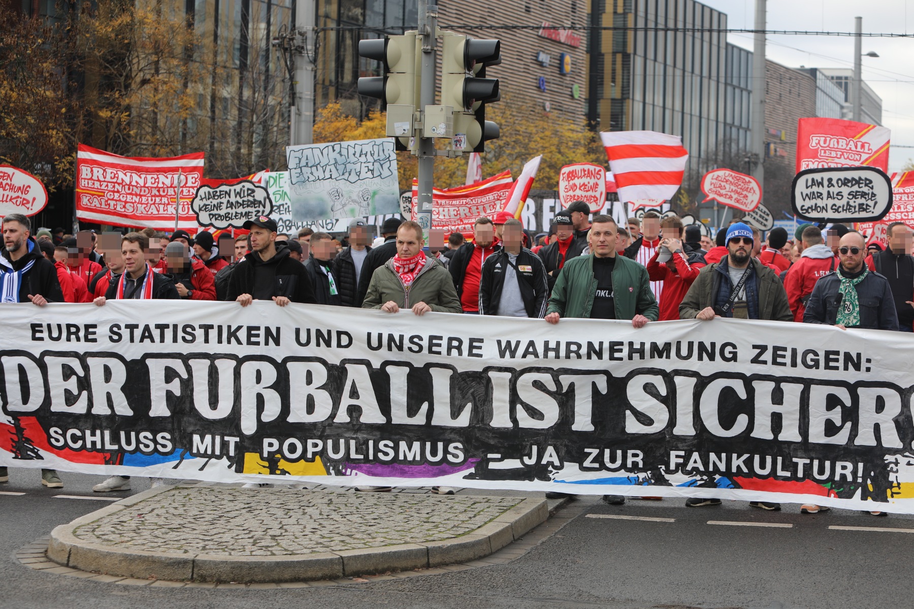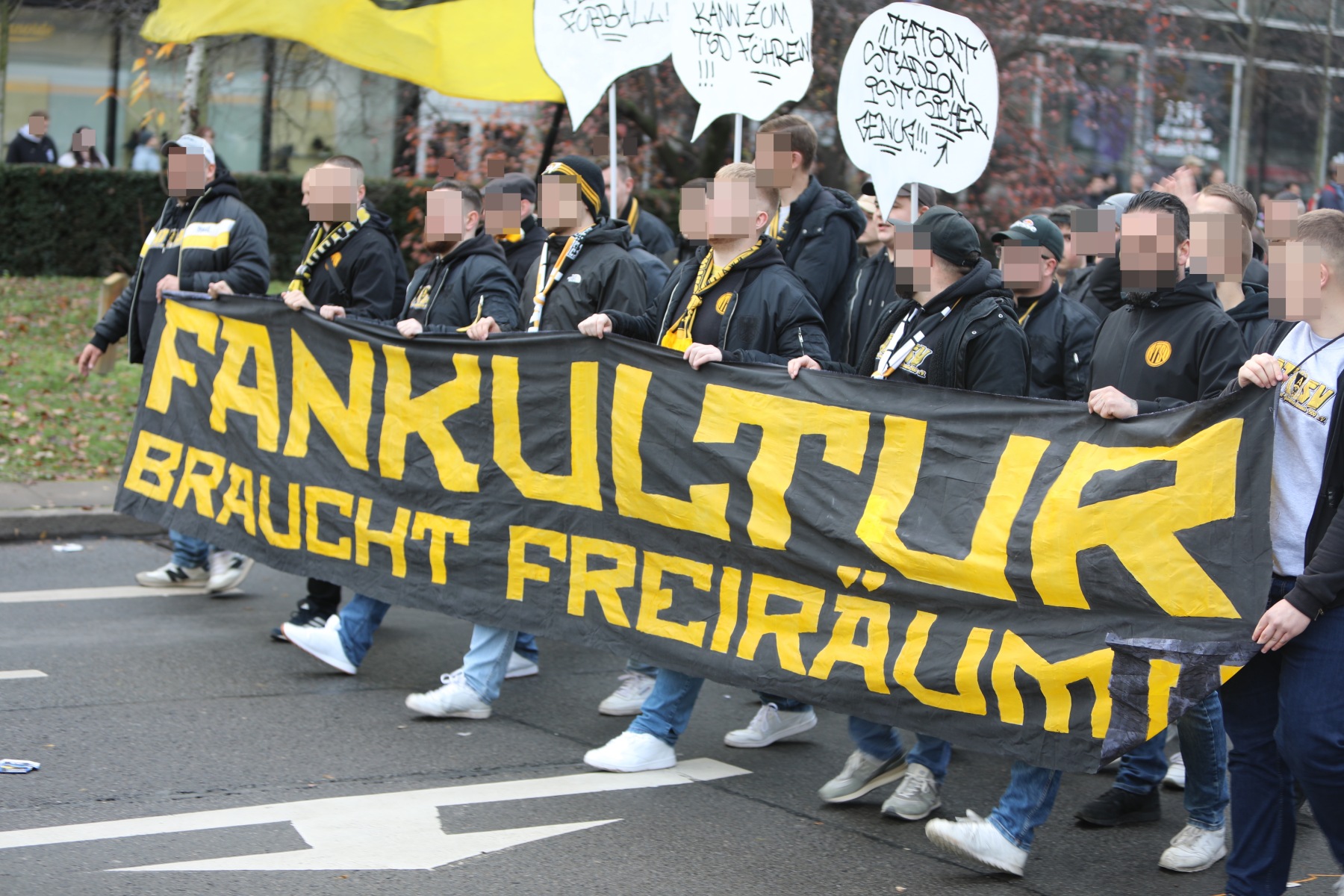 Rückblick Fan-Demo in Bildern Beitragsdatum 19. November 2025 Halbfinaleinzug im Stadt-Duell. Schwarz – Jeans – Schwarz!