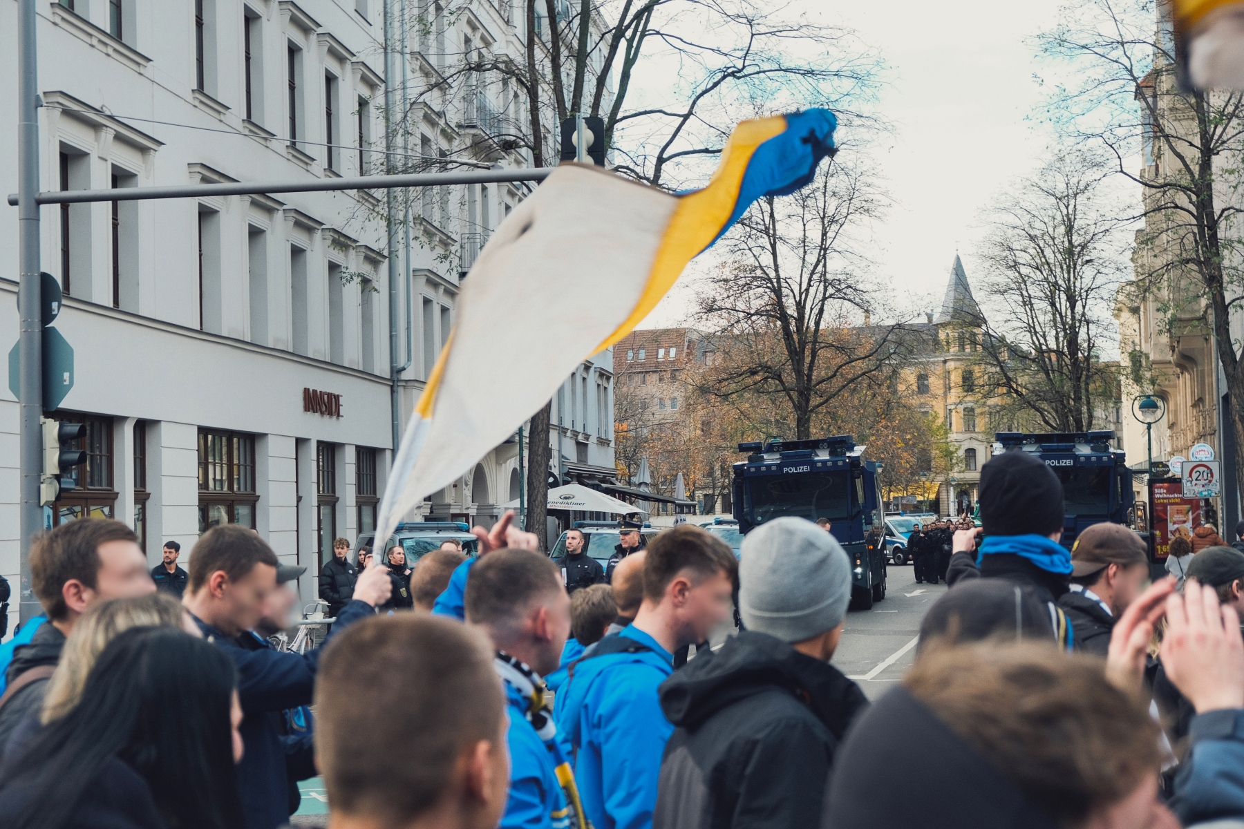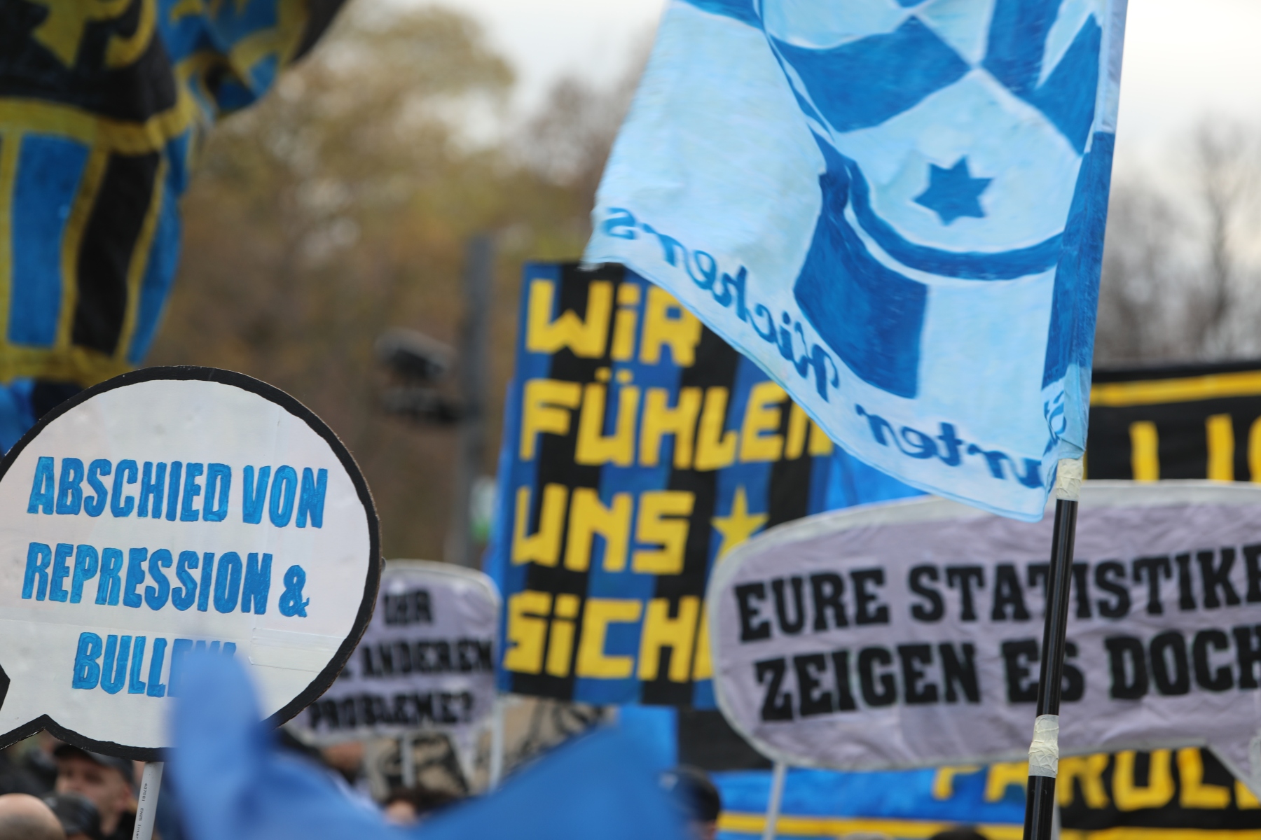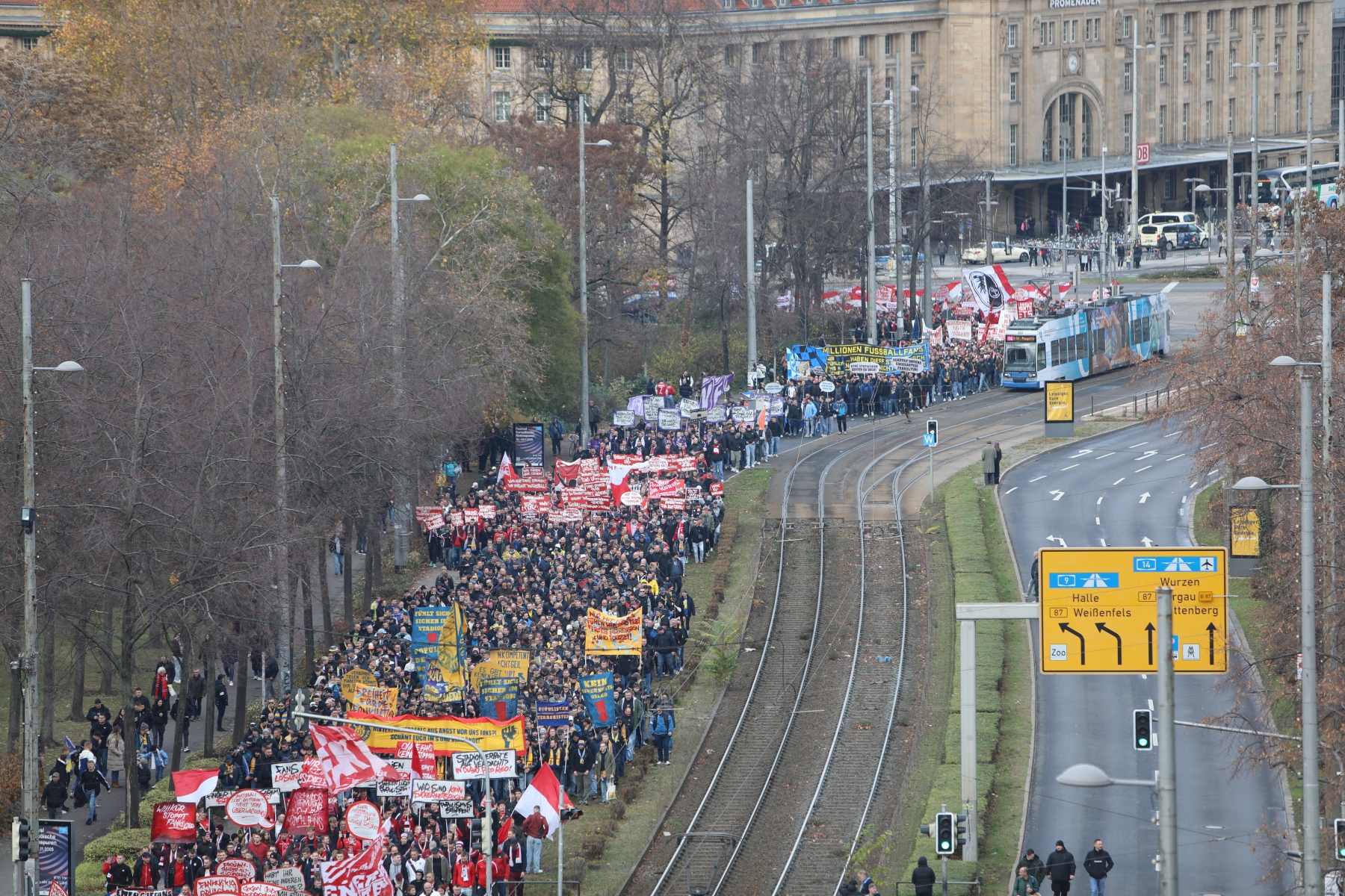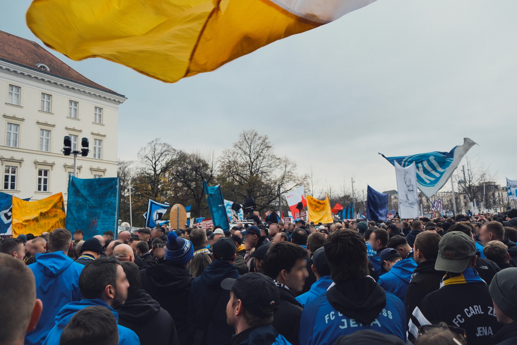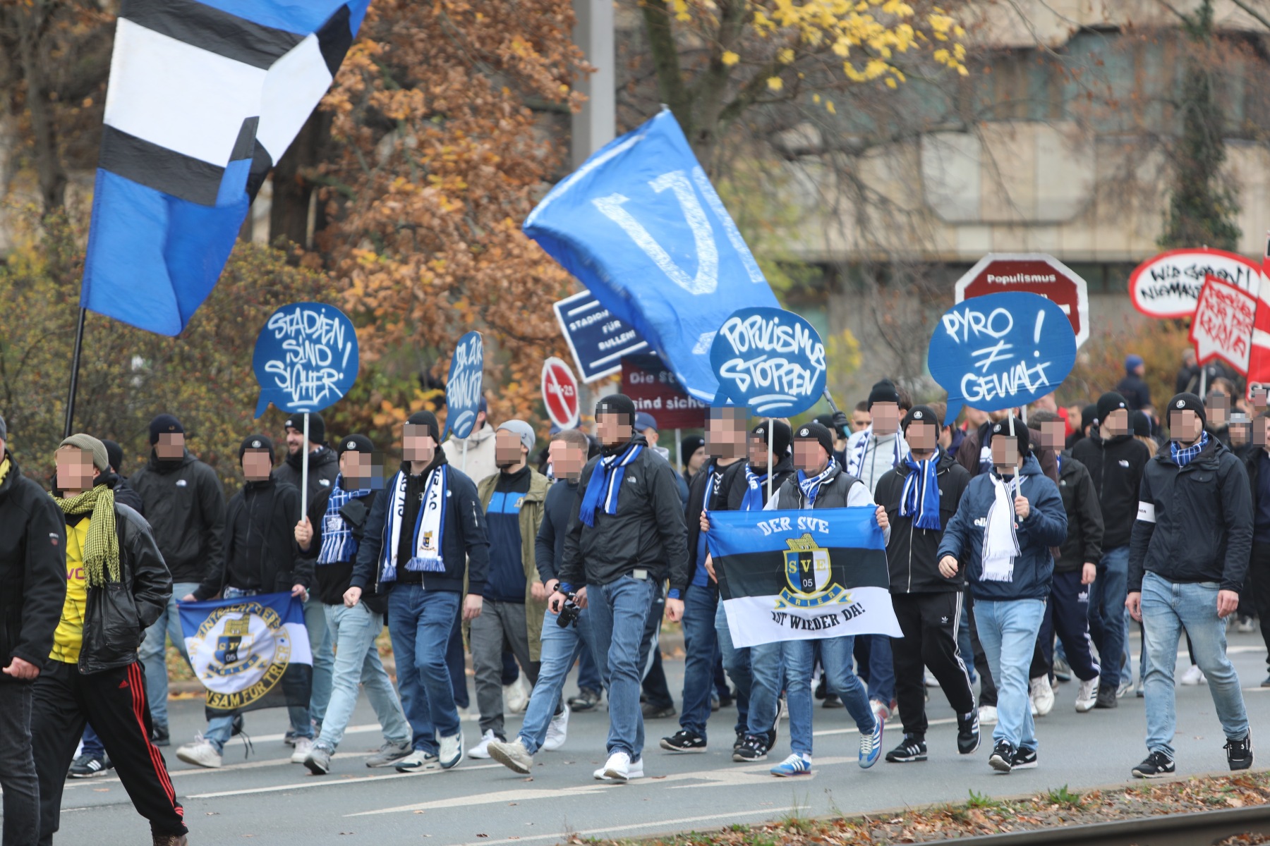 Rückblick Fan-Demo in Bildern Beitragsdatum 19. November 2025 Halbfinaleinzug im Stadt-Duell. Schwarz – Jeans – Schwarz!