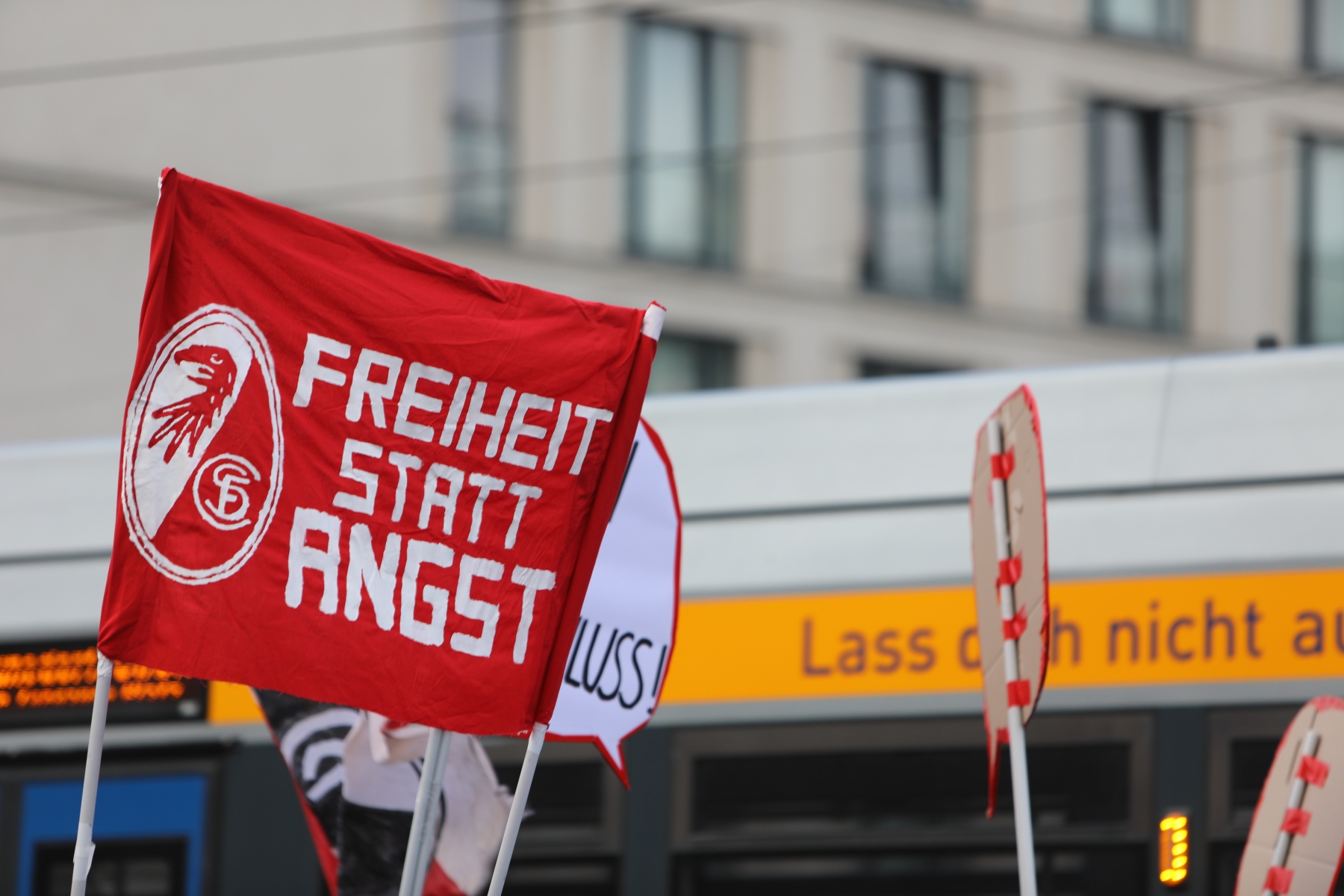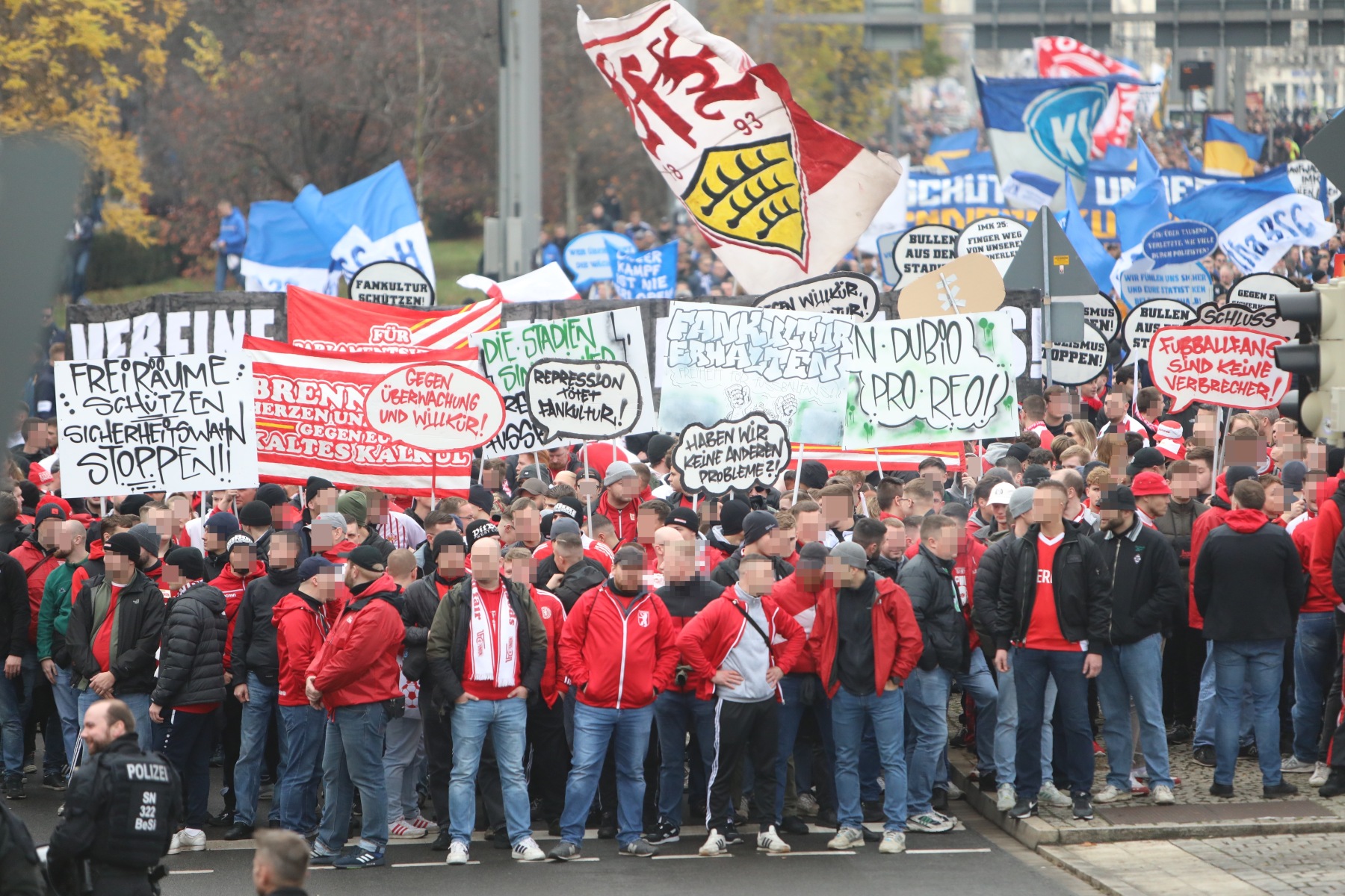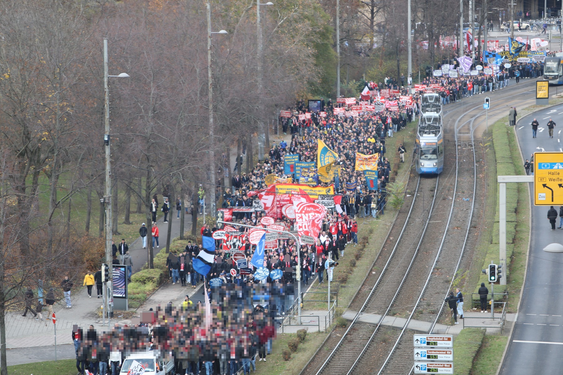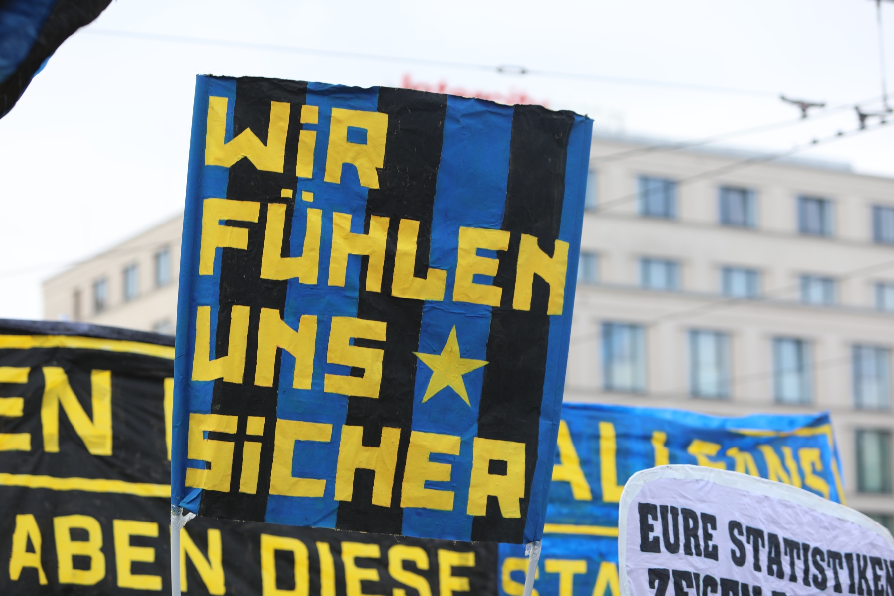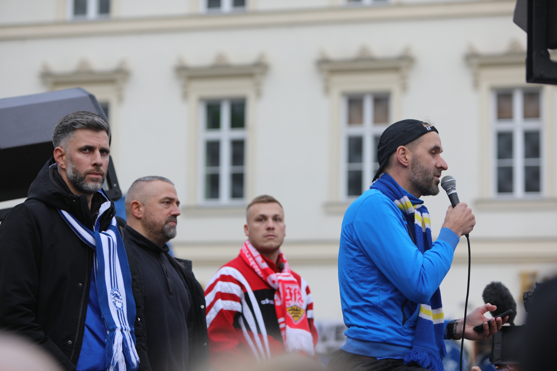 Rückblick Fan-Demo in Bildern Beitragsdatum 19. November 2025 Halbfinaleinzug im Stadt-Duell. Schwarz – Jeans – Schwarz!