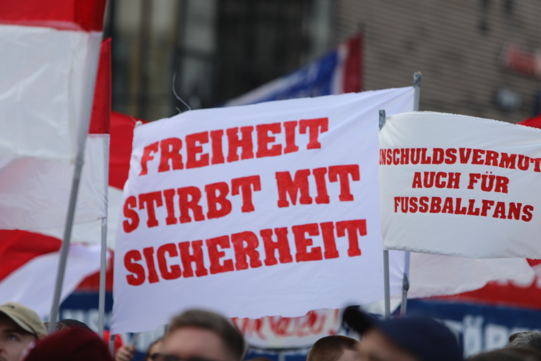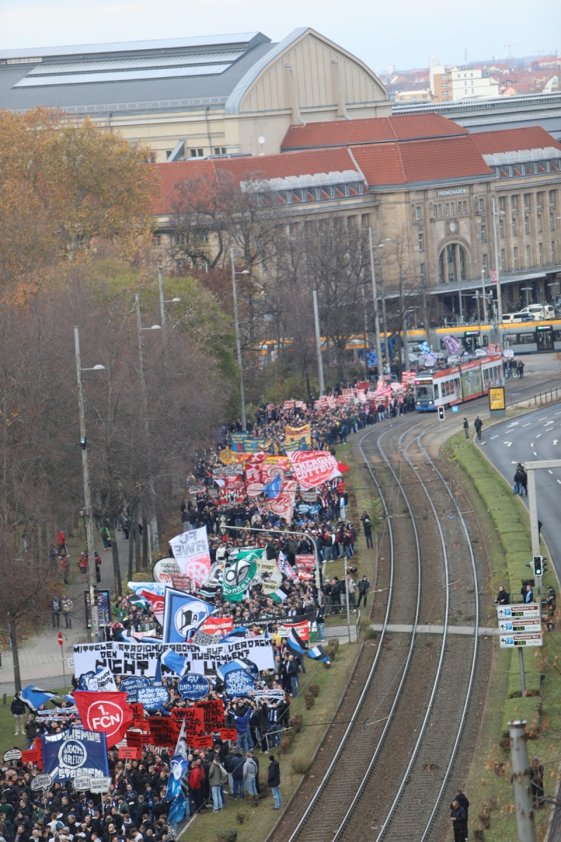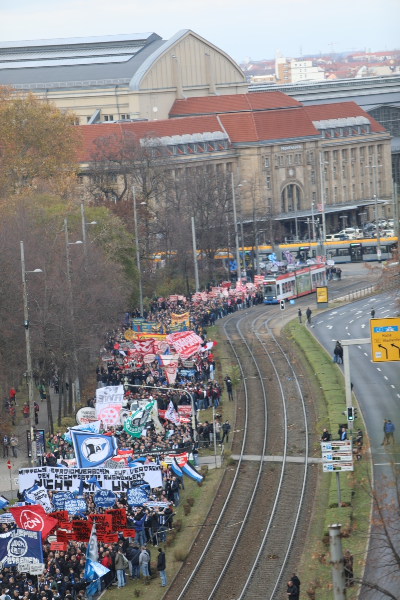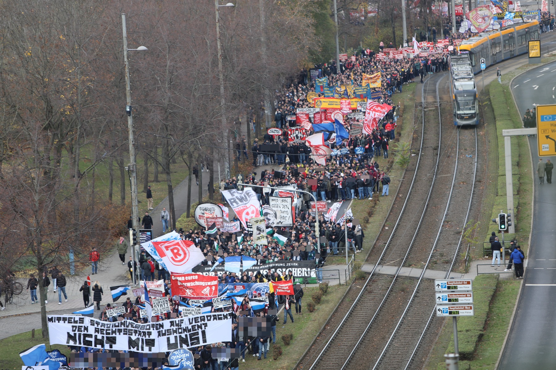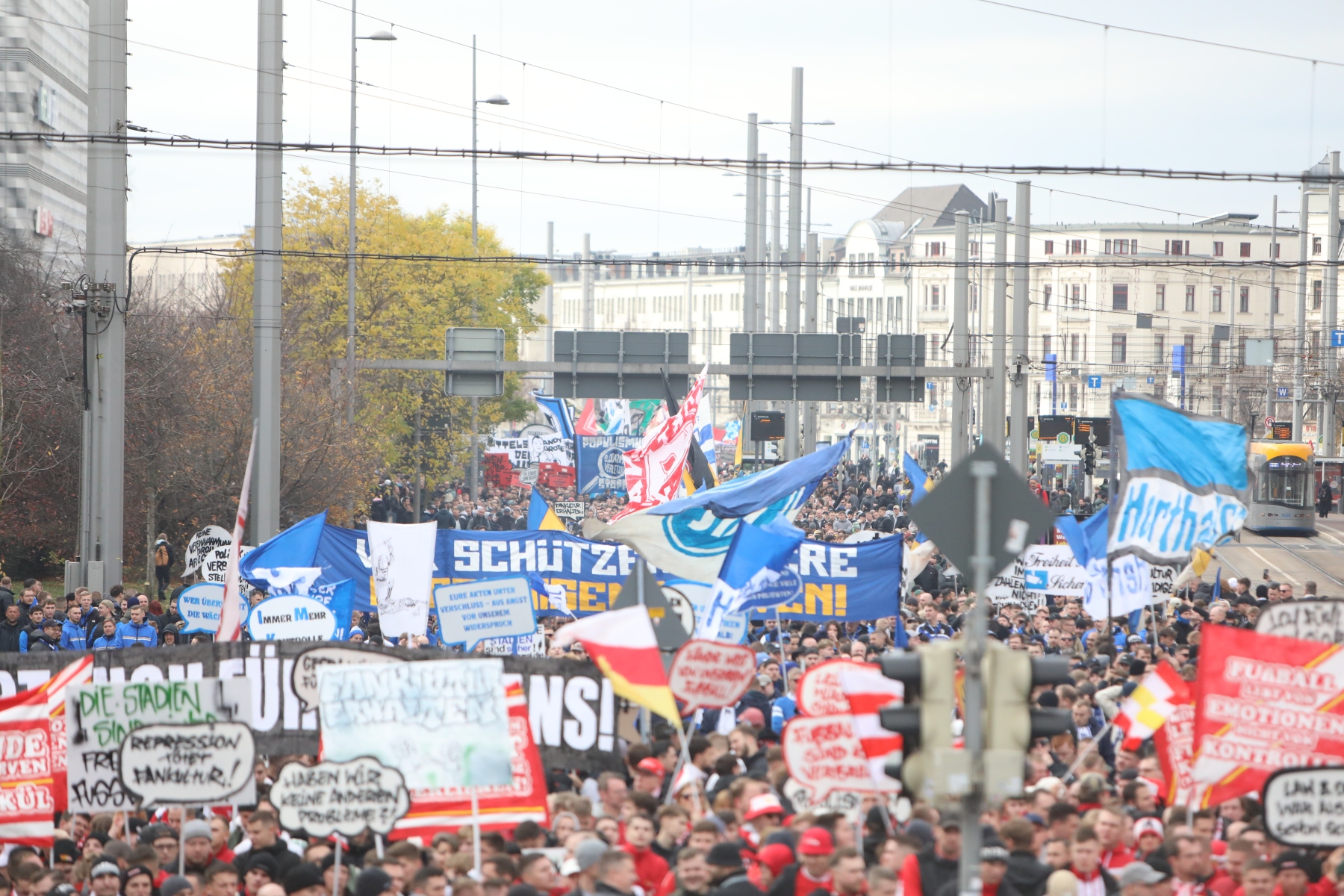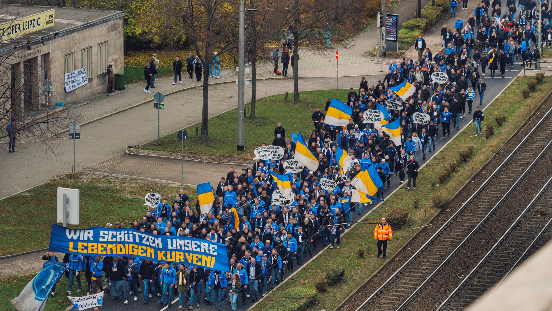 Rückblick Fan-Demo in Bildern Beitragsdatum 19. November 2025 Halbfinaleinzug im Stadt-Duell. Schwarz – Jeans – Schwarz!