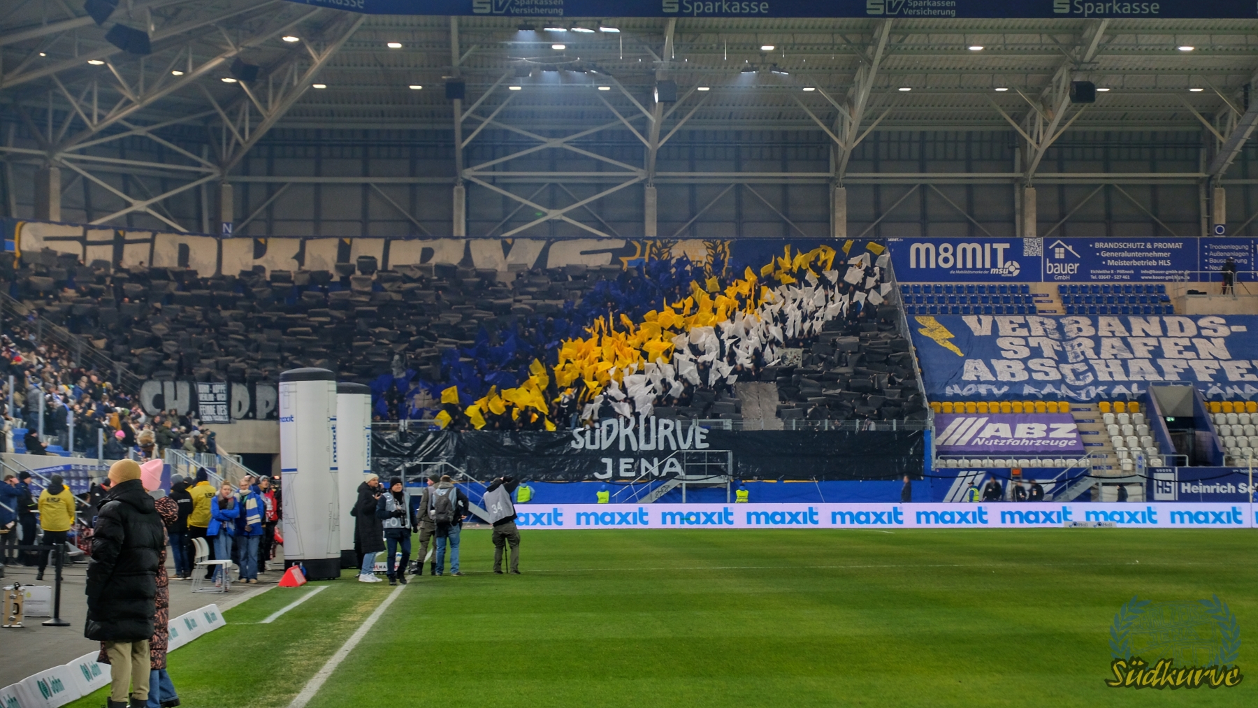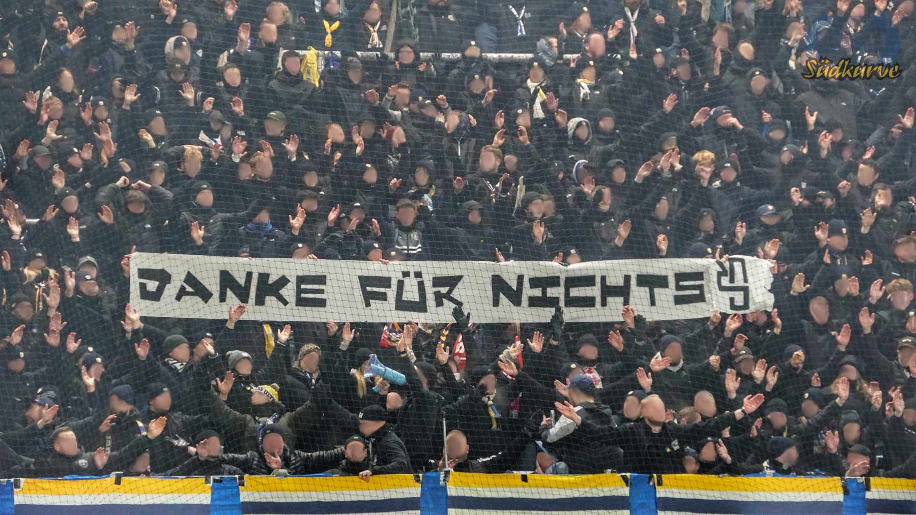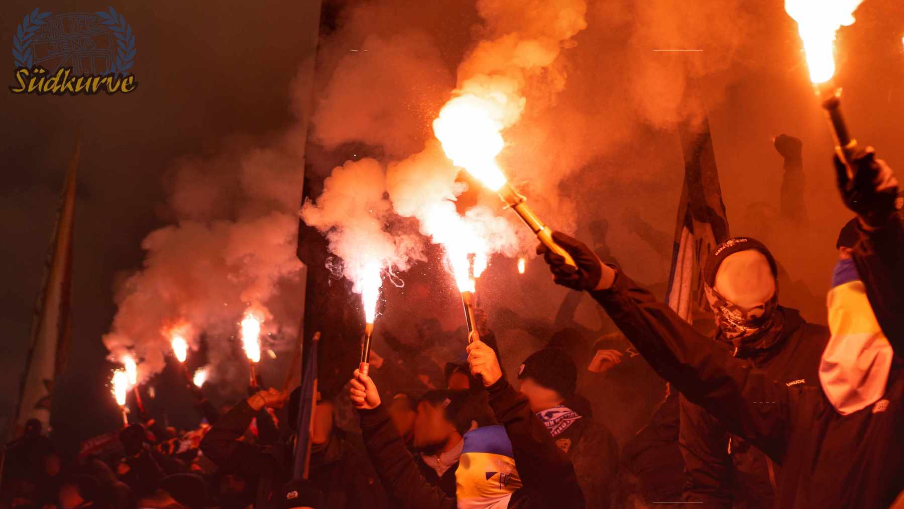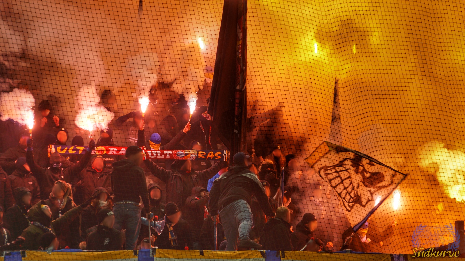 Leider konnte die Kurve nach einem kleinen Intro und anschließendem 12 Minuten andauernden stillem Beobachten die Erwartungen diesmal nicht ganz erfüllen. Pünktlich zur Derby-Generalprobe also ein kleiner Wachrüttler zu richtigen Zeit. Südkurve, jetzt umso mehr an die eigene Nase packen, auf die eigenen Stärken besinnen und bereit machen. Nochmal nicht nur 90%! Rüber! Nieder! Los!